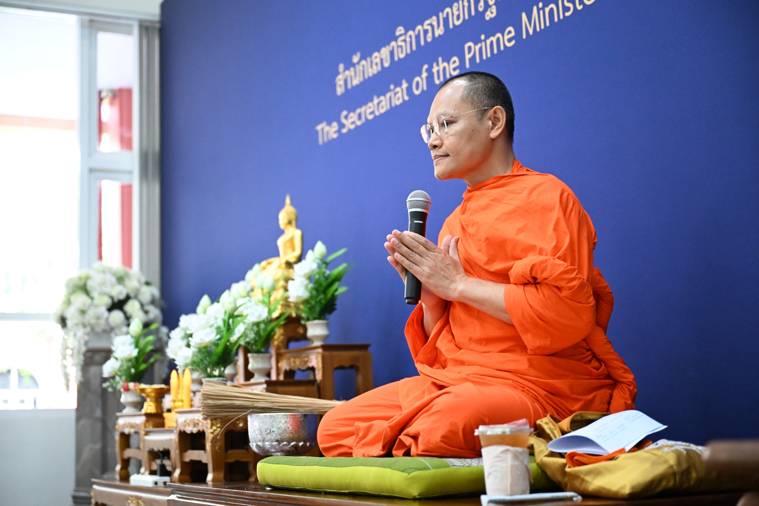 ทำเนียบรัฐบาล (24 มีนาคม 2569) – สำนักเลขาธิการนายกรัฐมนตรี (สลน.) เดินหน้าสร้างพลังใจให้คนทำงาน จัดกิจกรรมทำบุญและฟังธรรมประจำเดือนมีนาคม ณ อาคาร สลน. 1 โดยมุ่งเน้นการนำหลักธรรมมาประยุกต์ใช้ในการปฏิบัติราชการอย่างมีคุณธรรมและโปร่งใส