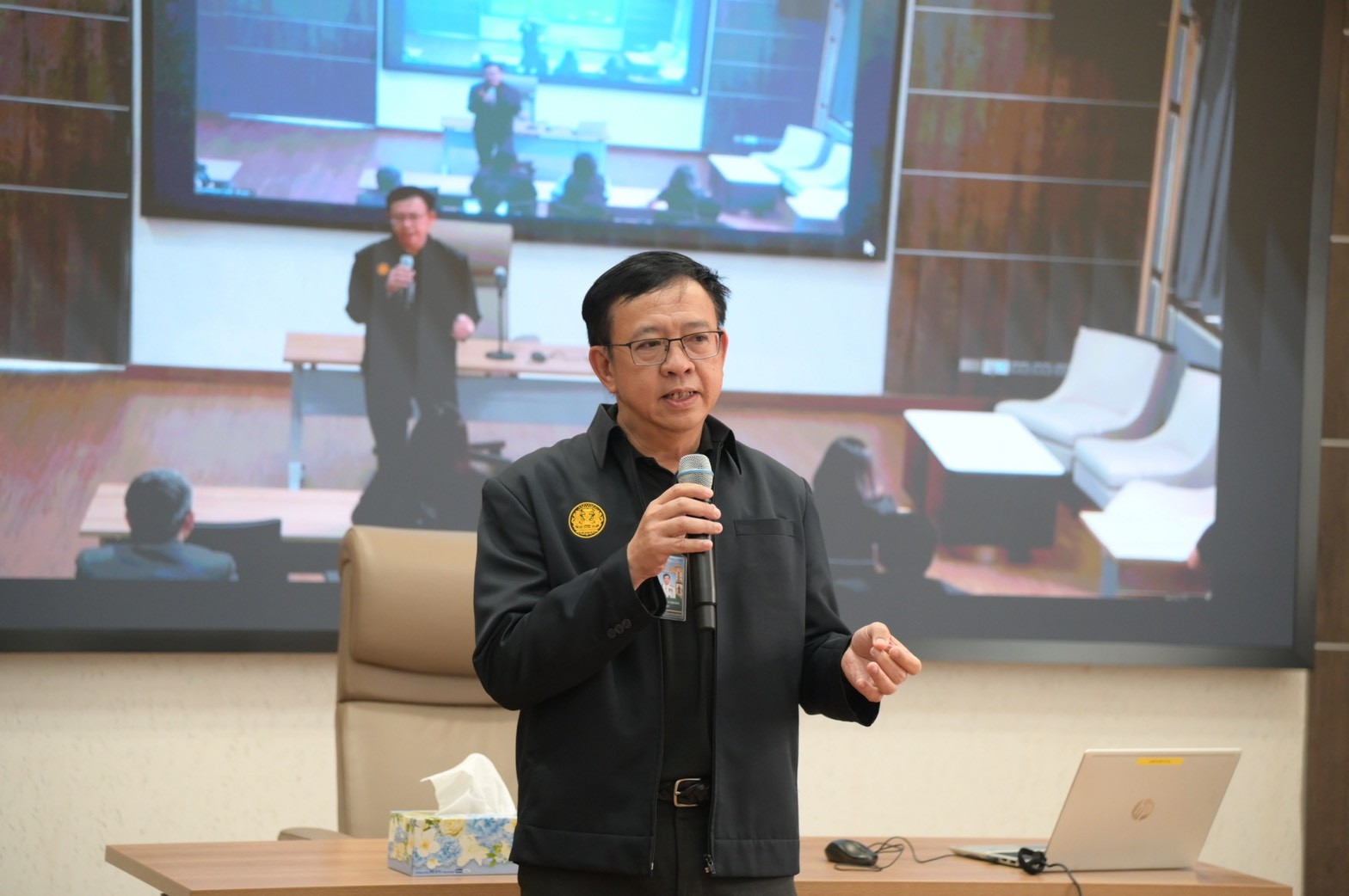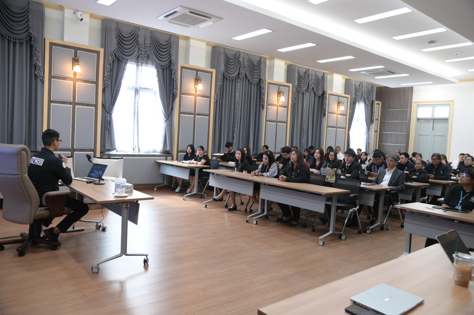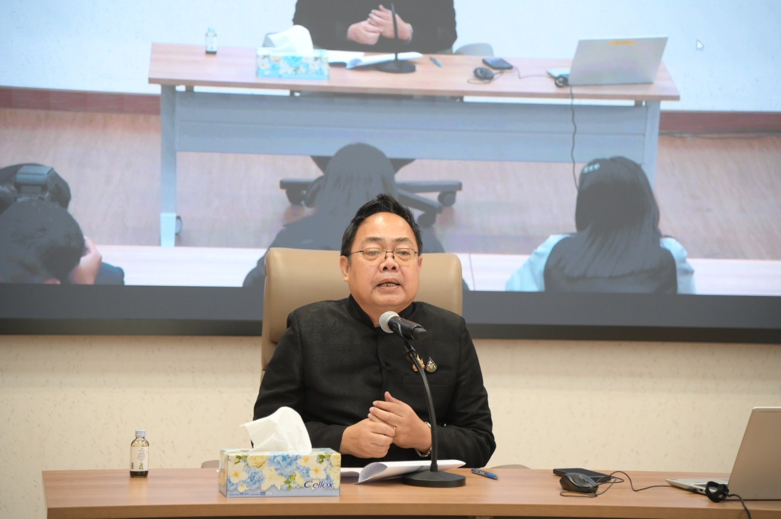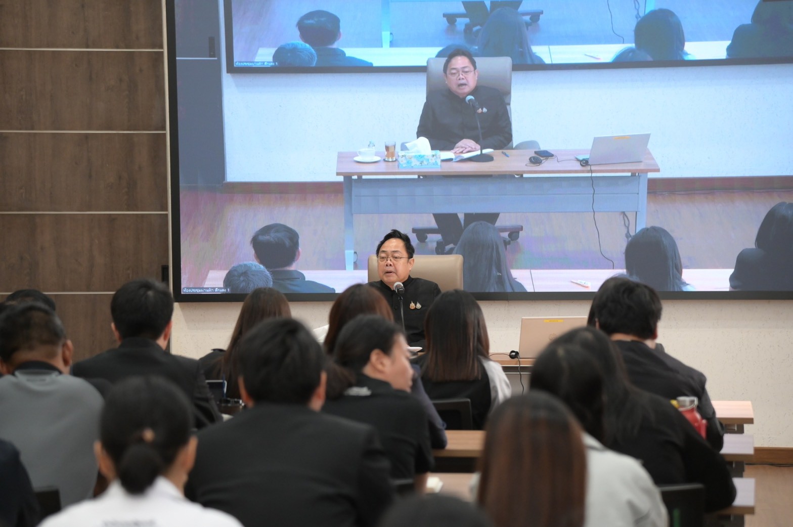 โดยการจัดการอบรมในวันนี้ จัดขึ้น ณ ห้องผ่านฟ้า ตึกแดง 1 และดำเนินการผ่านระบบการประชุมทางไกล (VDO Conference) เพื่อให้ครอบคลุมกลุ่มเป้าหมายอย่างทั่วถึง