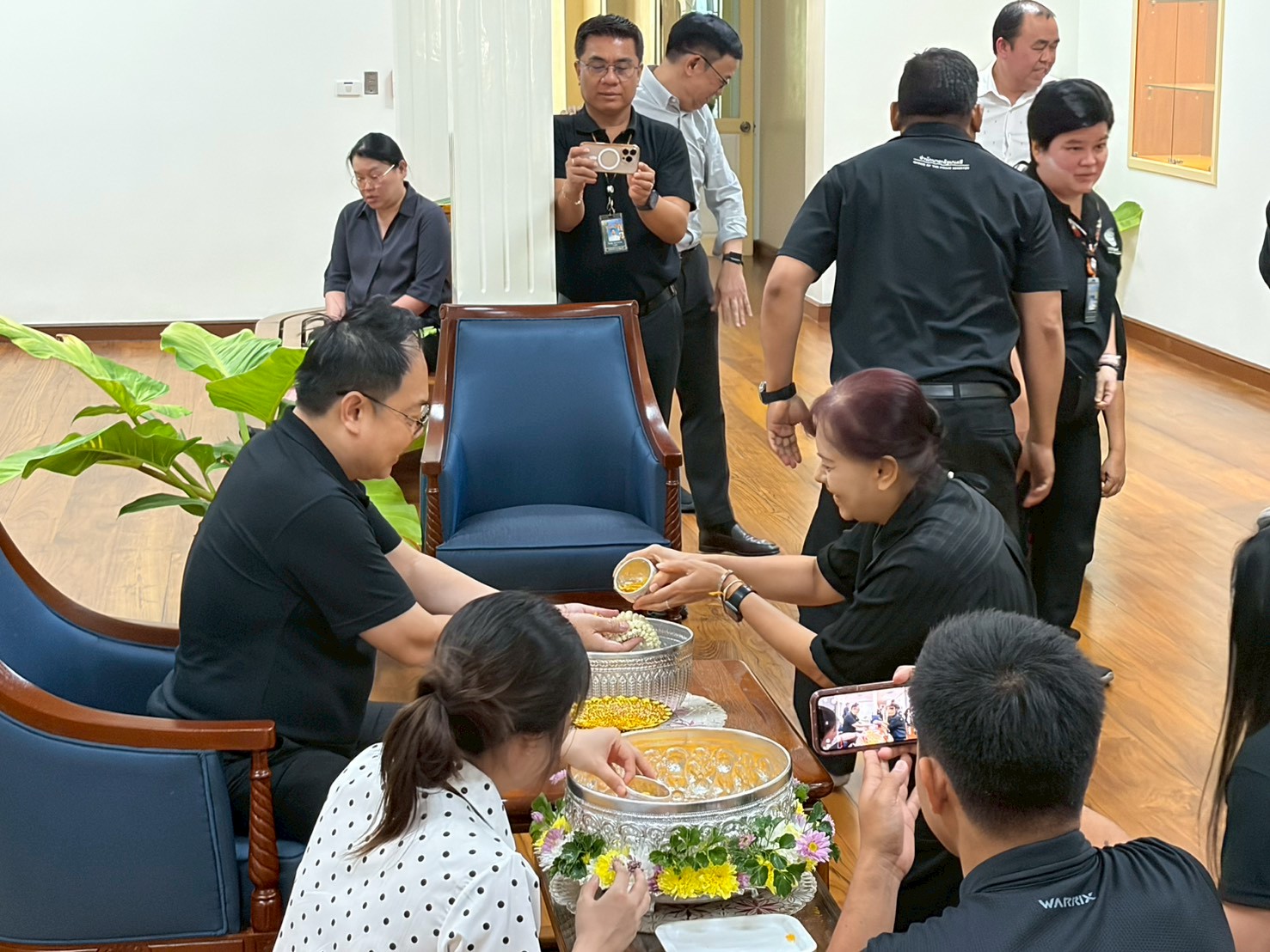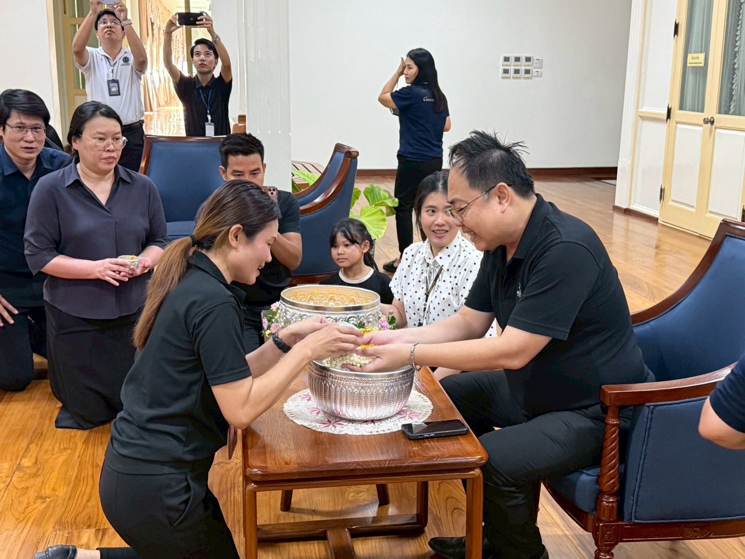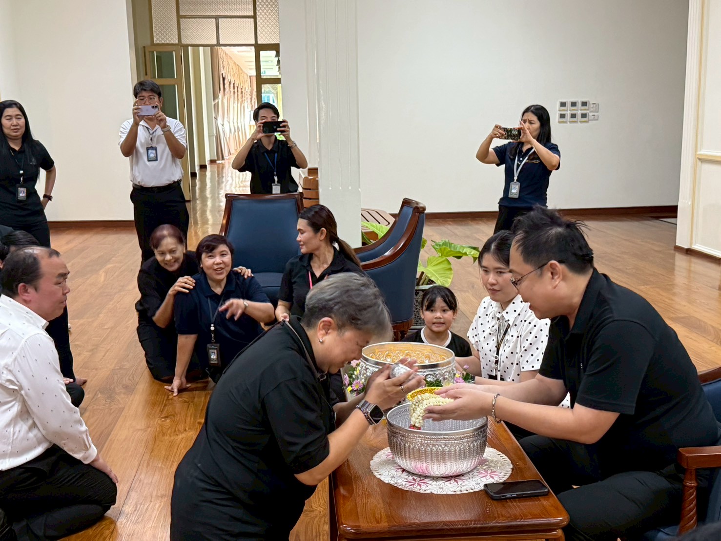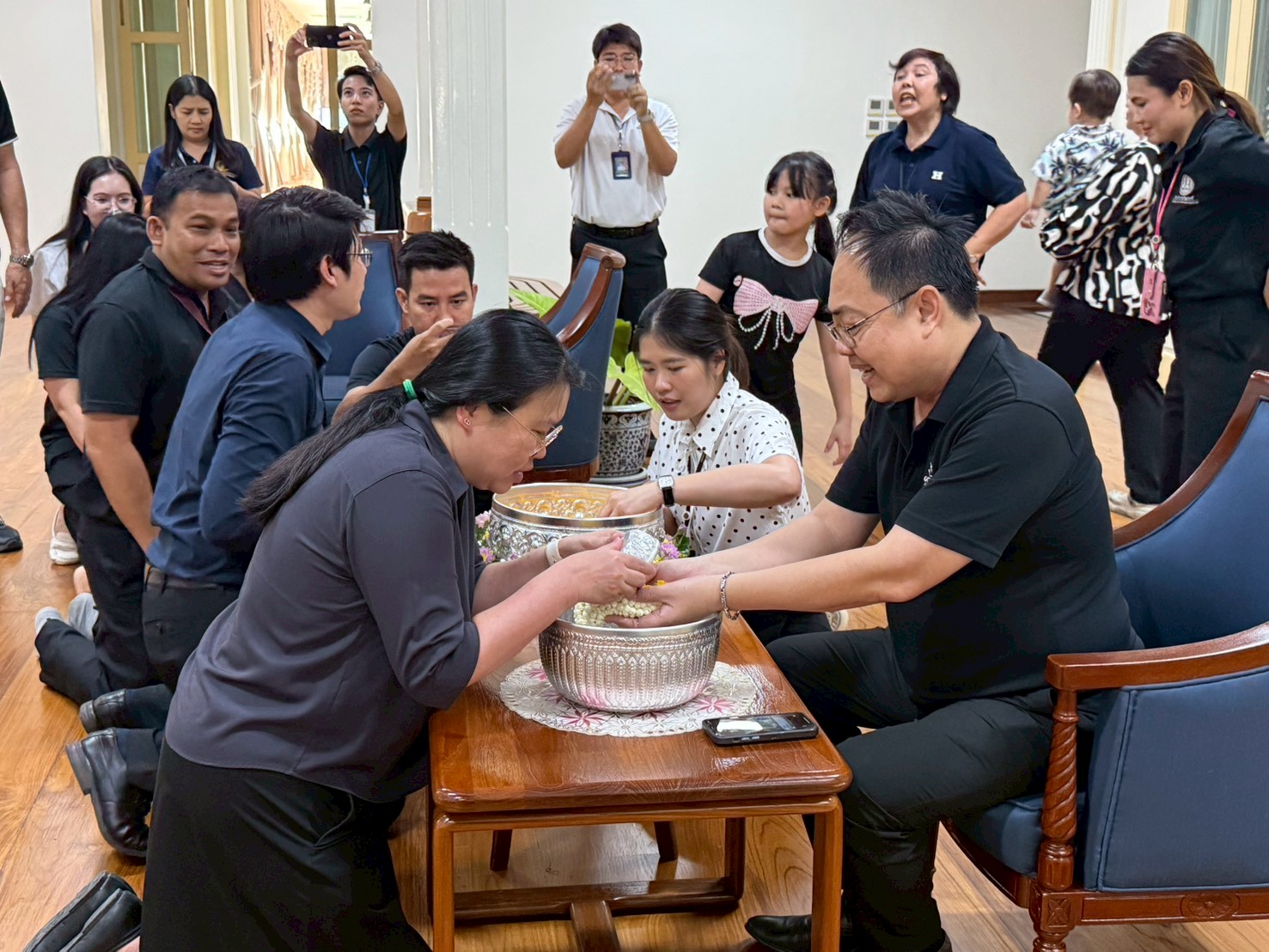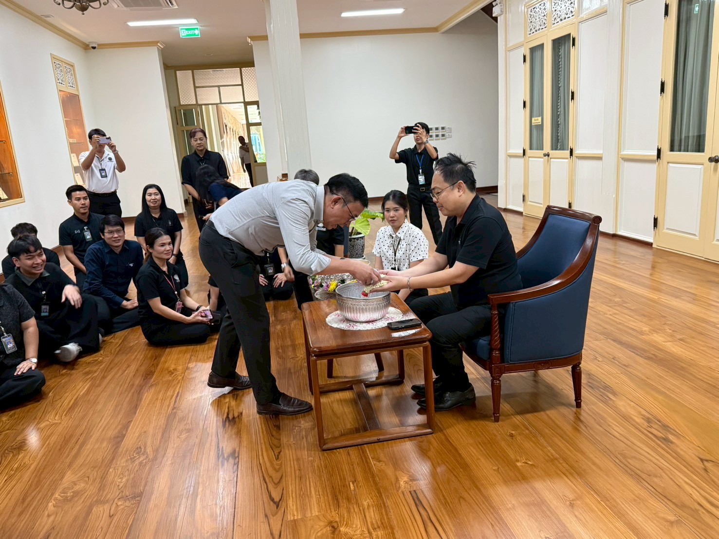 ภายในบรรยากาศอันอบอุ่นและอบอวลด้วยรอยยิ้ม คณะผู้บริหารและบุคลากร สลน. ได้ร่วมกันสรงน้ำพระพุทธรูป และประกอบพิธีรดน้ำดำหัวขอพรจากผู้ใหญ่และผู้บริหารระดับสูง เพื่อแสดงความกตัญญูกตเวทีและรับพลังใจในการปฏิบัติงาน โดยได้รับเกียรติจากผู้บริหารระดับสูงเข้าร่วมให้พร ประกอบด้วย: