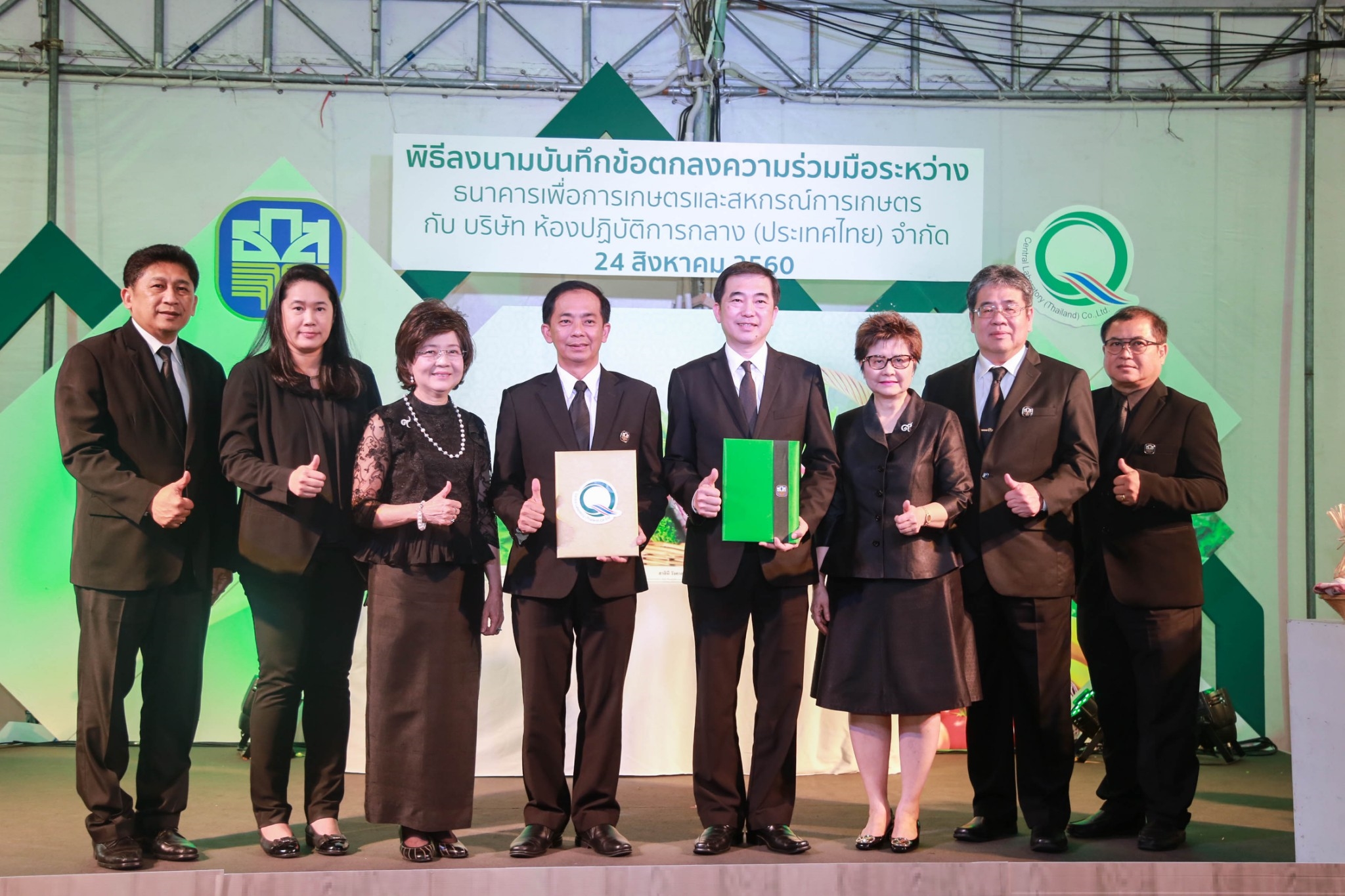วันนี้ (24 สิงหาคม 2560) เวลา 15.00 น. นางสาวเรณู ตังคจิวางกูร รองเลขาธิการนายกรัฐมนตรีฝ่ายการเมือง เป็นประธานในพิธีลงนามบันทึกข้อตกลงความเข้าใจระหว่าง ธ.ก.ส. ร่วมมือกับบริษัทห้องปฏิบัติการกลาง (ประเทศไทย) จำกัด โดยมี นายอภิรมย์ สุขประเสริฐ ผู้จัดการ ธ.ก.ส. และ นายสุรชัย กำพลานนท์วัฒน์ กรรมการผู้อำนวยการบริษัทห้องปฏิบัติการกลาง (ประเทศไทย) จำกัด ร่วมลงนาม เพื่อสนับสนุนส่งเสริมเกษตรกร ชุมชน และสถาบันเกษตรกร ผลิตสินค้าเกษตรและปัจจัยการผลิตทางการเกษตรให้มีมาตรฐาน ก้าวสู่การแข่งขันในระดับสากล ณ ตลาดคลองผดุงกรุงเกษม ทำเนียบรัฐบาล