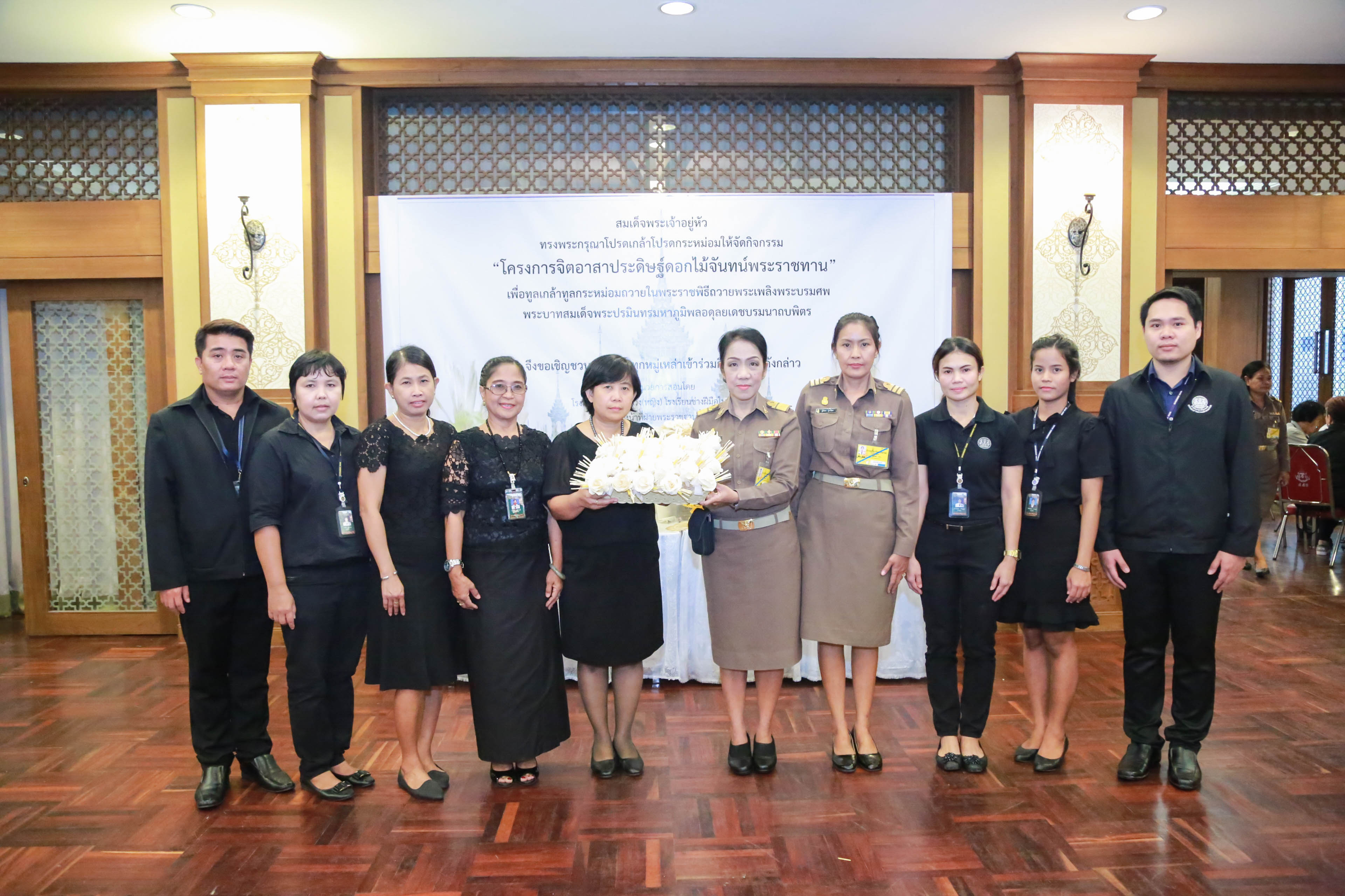 คณะผู้แทนสำนักเลขาธิการนายกรัฐมนตรี ส่งมอบดอกไม้จันทร์จำนวน 2,919 ดอก ให้กับ"โครงการจิตอาสาประดิษฐ์ดอกไม้จันทร์พระราชทาน" เพื่อทูลเกล้าทูลกระหม่อมถวายในพระราชพิธีถวายพระเพลิงพระบรมศพพระบาทสมเด็จพระปรมินทรมหาภูมิพลอดุลยเดชบรมนาถบพิตร เมื่อวันอังคารที่ 12 กันยายน 2560 ณ สำนักพระราชวัง (สนามเสือป่า)