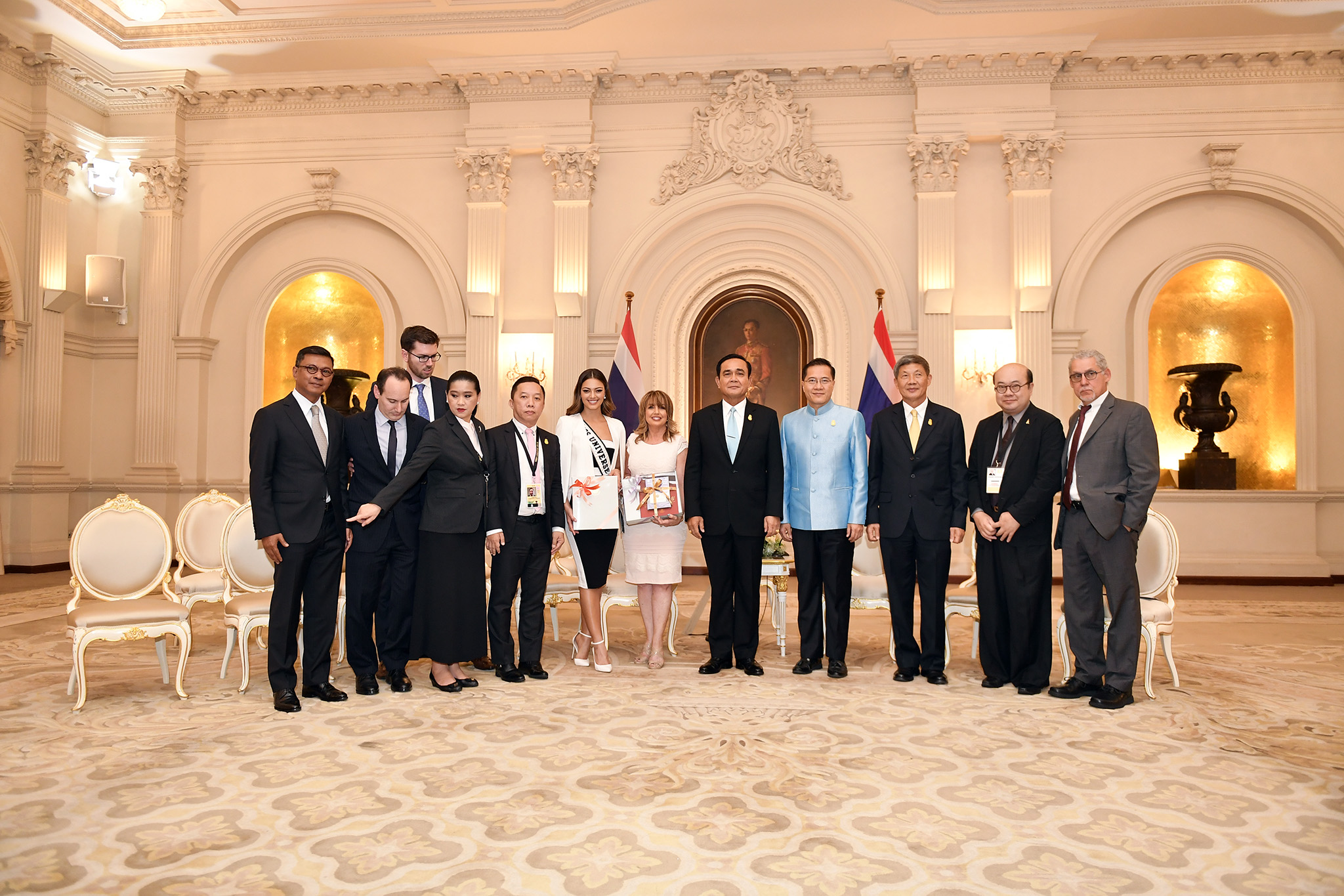 วันนี้ (11 ธ.ค. 2561) เวลา 13.00 น. ณ ตึกสันติไมตรีหลังใน ตึกไทยคู่ฟ้า ทำเนียบรัฐบาล นาง Paula M. Shugart ประธาน Miss Universe Organization นางสาว Demi-Leigh Nel-Peters ผู้ดำรงตำแหน่ง Miss Universe 2017 และคณะผู้เข้าประกวดนางงามจักรวาลปี 2561 เข้าเยี่ยมคารวะ พลเอก ประยุทธ์ จันทร์โอชา นายกรัฐมนตรี โดยมีเลขาธิการนายกรัฐมนตรี ร่วมต้อนรับ นายกรัฐมนตรีกล่าวยินดีที่ได้พบนาง Paula M. Shugart และนางสาว Demi-Leigh Nel-Peters นางงามจักรวาลปี 2560 อีกครั้ง พร้อมกับขอต้อนรับผู้เข้าร่วมการประกวดนางงามจักรวาลทั้ง 94 คน ที่ทำเนียบรัฐบาล และเชื่อว่าการที่ไทยเป็นเจ้าภาพฯ จะเป็นโอกาสดีในการประชาสัมพันธ์ประเทศ และกล่าวให้ผู้เข้าร่วมประกวดจากไทยช่วยแนะนำเพื่อนนางงาม ถึงขนบธรรมเนียม วัฒนธรรมไทย ที่สวยงาม ซึ่งประธาน Miss Universe Organization ได้กล่าวว่า ขอบคุณที่นายกรัฐมนตรีได้สละเวลาให้เข้าเยี่ยมคารวะ ผู้เข้าประกวดทุกคนรู้สึกประทับใจการต้อนรับของไทย เชื่อมั่นว่าการจัดการประกวดครั้งนี้จะเป็นโอกาสในการประชาสัมพันธ์ประเทศไทย