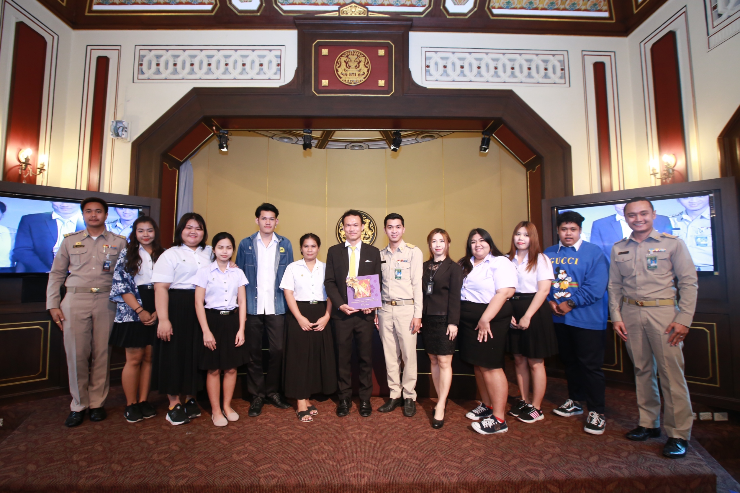 วันนี้(25 ก.พ. 62) เวลา 13.00 น. คณะกรรมการบริหารการเยี่ยมชมและศึกษาดูงานทำเนียบรัฐบาล ต้อนรับคณะอาจารย์ และนักศึกษา คณะรัฐศาสตร์และรัฐประศาสนศาสตร์ สถาบันรัชต์ภาคย์ กรุงเทพมหานคร เข้าเยี่ยมชมศึกษาดูงาน และรับฟังการบรรยายเกี่ยวกับประวัติความเป็นมาของทำเนียบรัฐบาล ณ ตึกนารีสโมสร ทำเนียบรัฐบาล