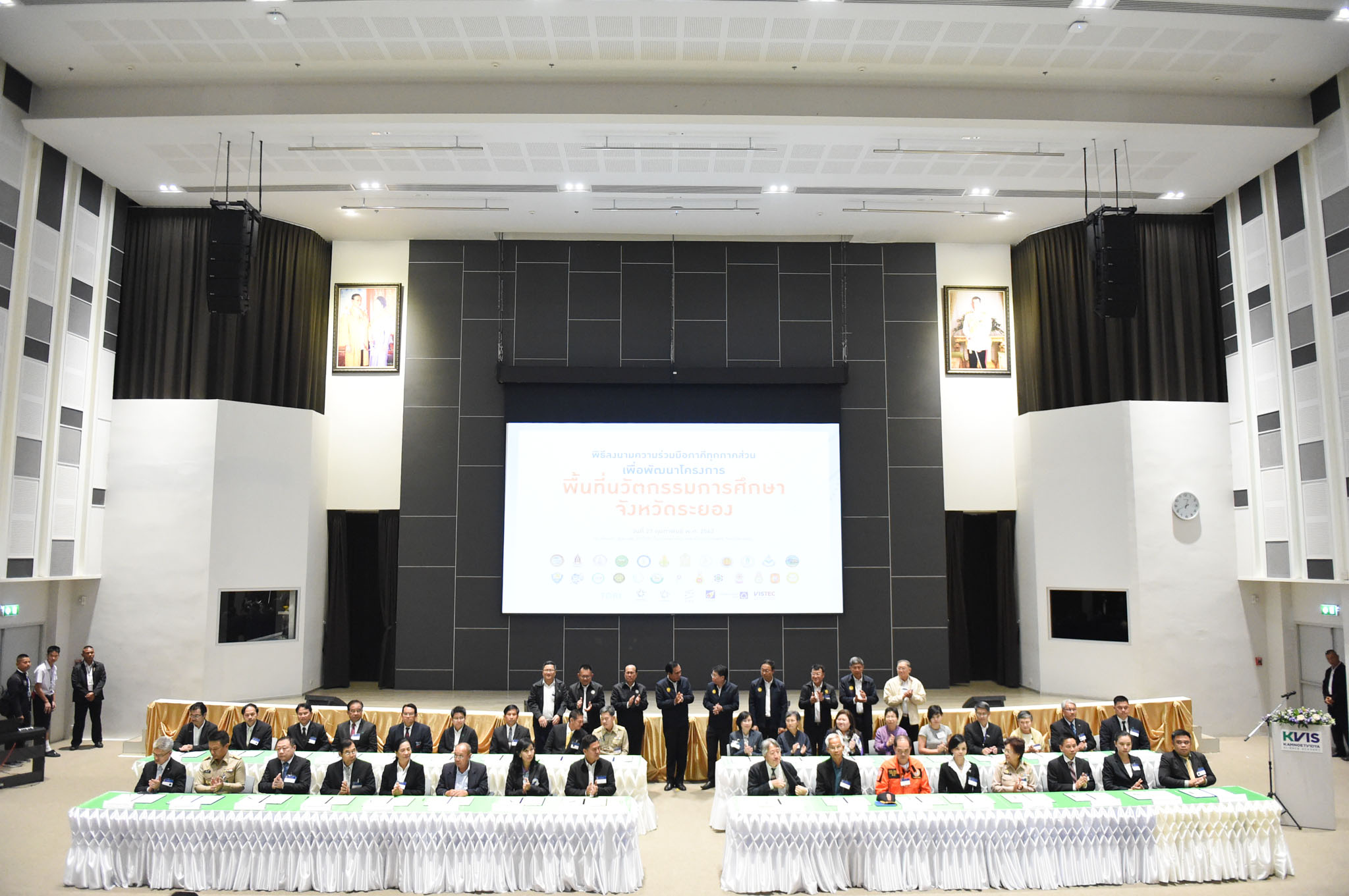 วันนี้ (27 ก.พ.62) เวลา 12.15 น. ณ หอประชุมธงชัย ชิวปรีชา โรงเรียนกำเนิดวิทย์ จังหวัดระยอง พลเอก วิลาศ อรุณศรี เลขาธิการนายกรัฐมนตรี ร่วมเป็นสักขีพยานพิธีลงนามความร่วมมือภาคีทุกภาคส่วน เพื่อพัฒนาโครงการพื้นที่นวัตกรรมการศึกษาจังหวัดระยอง โดยมีพลเอก ประยุทธ์ จันทร์โอชา นายกรัฐมนตรีเป็นประธานสักขีพยานในพิธีฯ โครงการฯดังกล่าวเป็นความร่วมมือภาคีทุกภาคส่วนเพื่อพัฒนาโครงการพื้นที่นวัตกรรมการศึกษาจังหวัดระยอง จำนวนกว่า 30 องค์กร ให้เป็นกลไกสำคัญในการขับเคลื่อนยุทธศาสตร์และพื้นที่นวัตกรรมการศึกษาจังหวัดระยอง เพื่อให้จังหวัดระยองเป็นต้นแบบในการปฏิรูปการศึกษา ที่มุ่งจัดการศึกษาสำหรับคนทุกช่วงวัยและทุกระดับที่ตอบโจทย์ ระยอง เท่าเทียม ทั่วถึง เท่าทัน สมดุล ร่วมสร้างระยองให้เป็นเมืองน่าอยู่ และมีกรอบความร่วมมือในประเด็นสำคัญ คือ 1) ให้ความร่วมมือในการคิดค้นและพัฒนานวัตกรรมด้านการศึกษาเรียนรู้ เพื่อยกระดับผลสัมฤทธิ์ทางการเรียนของผู้เรียน 2) ให้ความร่วมมือในการลดความเหลื่อมล้ำทางการศึกษา และ 3) ให้ความร่วมมือกับหน่วยงานทางการศึกษาและสถานศึกษาต้นแบบ
