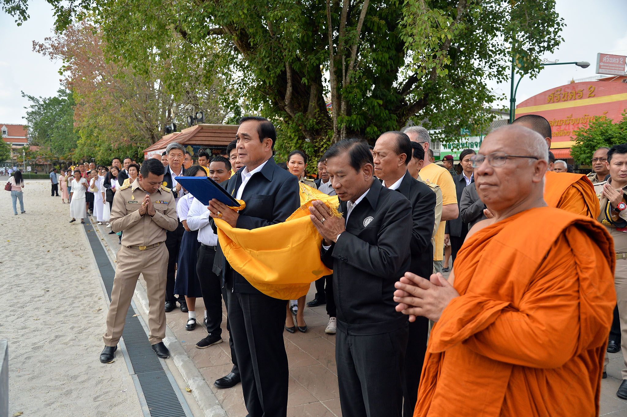 วันนี้ (18 มีนาคม 2562) เวลา 15.40 น. ณ วัดพระมหาธาตุวรมหาวิหาร ตำบลในเมือง อำเภอเมืองนครศรีธรรมราช จังหวัดนครศรีธรรมราช พลเอก ประยุทธ์ จันทร์โอชา นายกรัฐมนตรี พลเอกวิลาศ อรุณศรี เลขาธิการนายกรัฐมนตรี และคณะ กราบนมัสการเจ้าอาวาสวัดพระมหาธาตุวรมหาวิหาร และสักการะพระบรมเจดีย์เพื่อความเป็นสิริมงคล พร้อมกันนี้ นายกรัฐมนตรีพร้อมคณะได้ร่วมแห่ผ้าขึ้นพระธาตุร่วมกับประชาชน