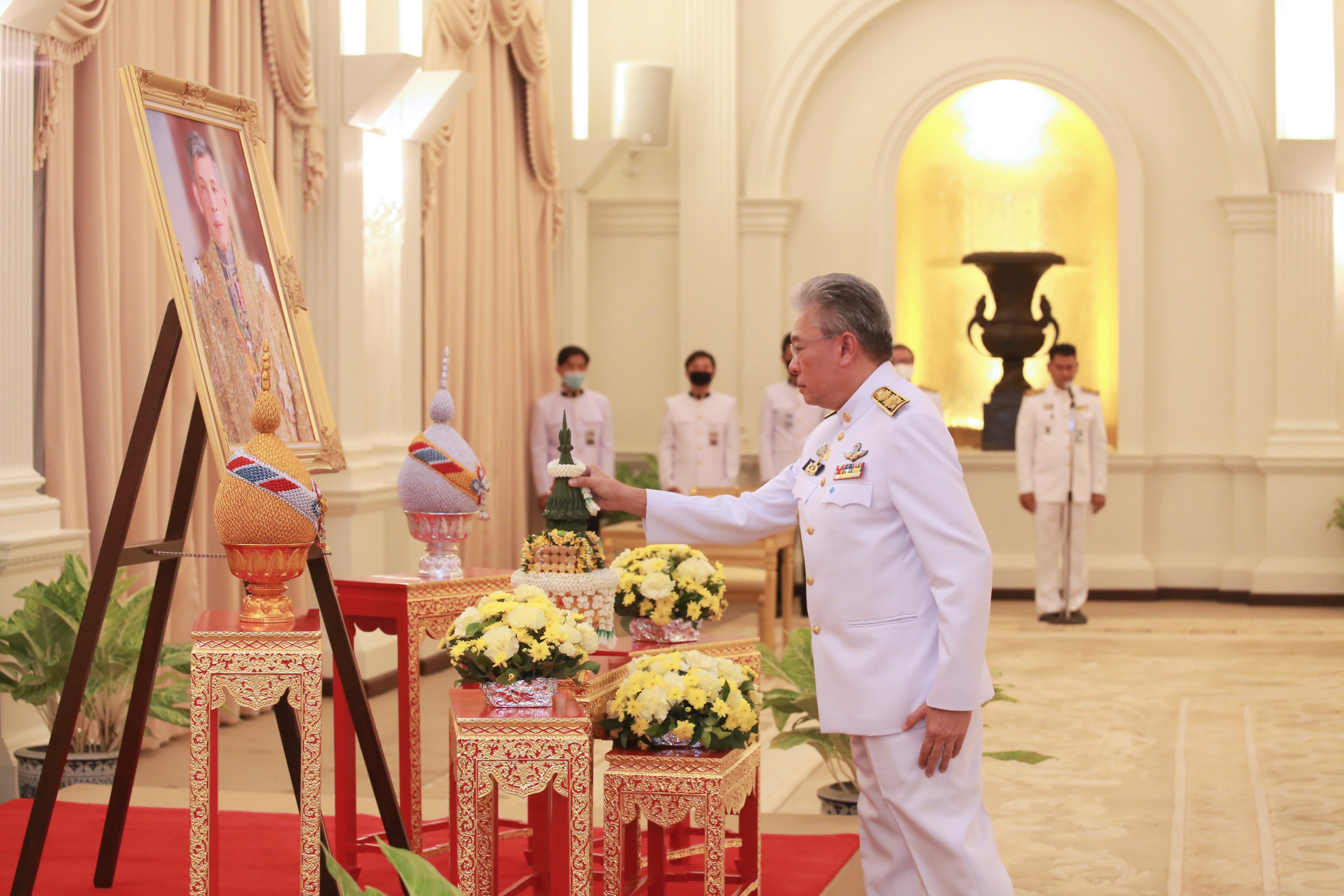 วันนี้ (1 พฤษภาคม 2563) เวลา 09.00 น. นายดิสทัต โหตระกิตย์ เลขาธิการนายกรัฐมนตรี เป็นประธานในพิธีถวายพระพรชัยมงคลแด่พระบาทสมเด็จพระเจ้าอยู่หัว เนื่องในโอกาสมหามงคล วันฉัตรมงคล 4 พฤษภาคม 2563 โดยมีปลัดสำนักนายกรัฐมนตรี เลขาธิการคณะรัฐมนตรี เลขาธิการสภาความมั่นคงแห่งชาติ พร้อมด้วยผู้บริหารระดับสูงของส่วนราชการภายในทำเนียบรัฐบาลร่วมพิธี ณ ตึกสันติไมตรี (หลังใน) ทำเนียบรัฐบาล