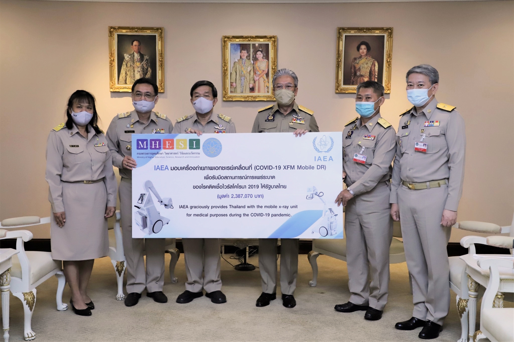 วันนี้ (10 สิงหาคม 2563) เวลา 09.30 น. นายดิสทัต โหตระกิตย์ เลขาธิการนายกรัฐมนตรี พร้อมด้วยผู้บริหารสำนักเลขาธิการนายกรัฐมนตรี ให้การต้อนรับคณะผู้บริหาร กระทรวงอุดมศึกษาวิทยาศาสตร์ วิจัยและนวัตกรรม (อว.) เพื่อรับมอบเครื่องถ่ายภาพเอกซเรย์เคลื่อนที่ (Covid-19 XFM Mobile DR) สำหรับรับมือสถานการณ์โรคติดเชื้อไวรัสโคโรนา 2019 ณ ห้องรับรอง 1 ตึกบัญชาการ 1 ทำเนียบรัฐบาล