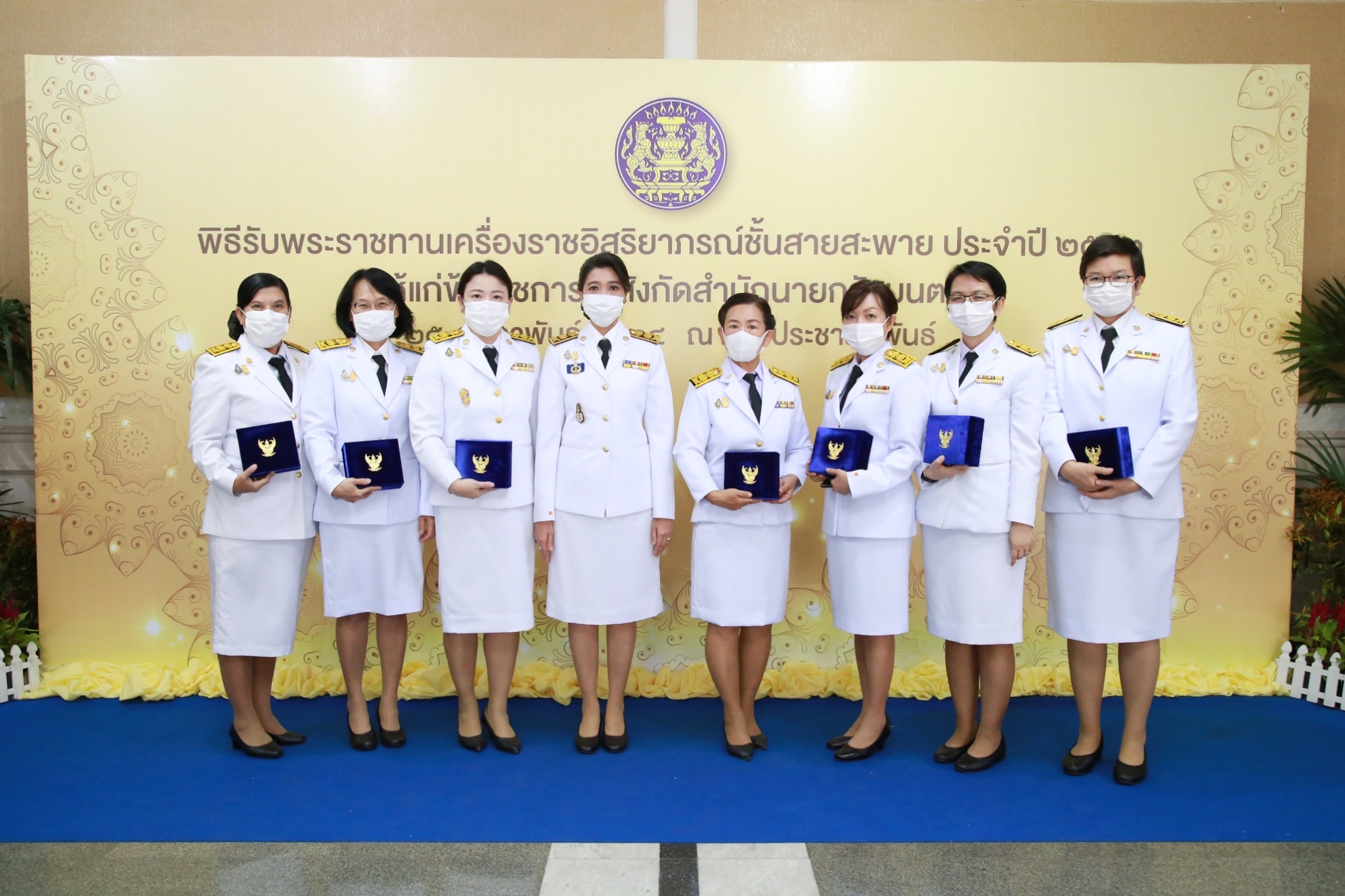 วันที่ 25 กุมภาพันธ์ 2564 เวลา 14.30 น. ณ หอประชุมกรมประชาสัมพันธ์ นางนิชา หิรัญบูรณะ ธุวธรรม รองเลขาธิการนายกรัฐมนตรีฝ่ายบริหาร ได้รับมอบหมายจาก นายดิสทัต โหตระกิตย์ เลขาธิการนายกรัฐมนตรี เข้าร่วมเป็นเกียรติในพิธีรับพระราชทานเครื่องราชอิสริยาภรณ์ชั้นสายสะพาย ประจำปี 2563 (ป.ม.) ต่อหน้าพระบรมฉายาลักษณ์พระบาทสมเด็จพระเจ้าอยู่หัว โดยมีข้าราชการสำนักเลขาธิการนายกรัฐมนตรี เข้าร่วมพิธี ซึ่งมีนายอนุชา นาคาศัย รัฐมนตรีประจำสำนักนายกรัฐมนตรี เป็นประธานในพิธี สำหรับการพระราชทานเครื่องราชอิสริยาภรณ์นั้น ทรงพระราชทานแก่ผู้กระทำความดีความชอบเป็นประโยชน์แก่ราชการหรือสาธารณชน โดยการพิจารณาเสนอขอพระราชทาน ของรัฐบาล เพื่อเป็นบำเหน็จความชอบและเครื่องหมายเชิดชูเกียรติยศอย่างสูงแก่ผู้ได้รับพระราชทาน