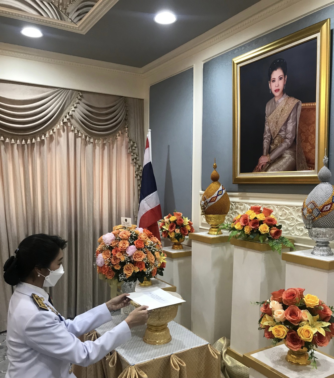 วันนี้ (4 กรกฎาคม 2564) เวลา 10.00 น. ณ ห้องรับรอง ชั้น 2 อาคารวิจัยเคมี สถาบันวิจัยจุฬาภรณ์ หลักสี่ กรุงเทพมหานคร นายกรัฐมนตรีมอบหมาย นางนิชา หิรัญบูรณะ ธุวธรรม รองเลขาธิการนายกรัฐมนตรีฝ่ายบริหาร เป็นผู้แทนถวายแจกันดอกไม้และหนังสือถวายพระพรชัยมงคล สมเด็จพระเจ้าน้องนางเธอ เจ้าฟ้าจุฬาภรณวลัยลักษณ์ อัครราชกุมารี กรมพระศรีสวางควัฒน วรขัตติยราชนารี เบื้องหน้าพระฉายาลักษณ์ เนื่องในโอกาสวันคล้ายวันประสูติ 4 กรกฎาคม 2564