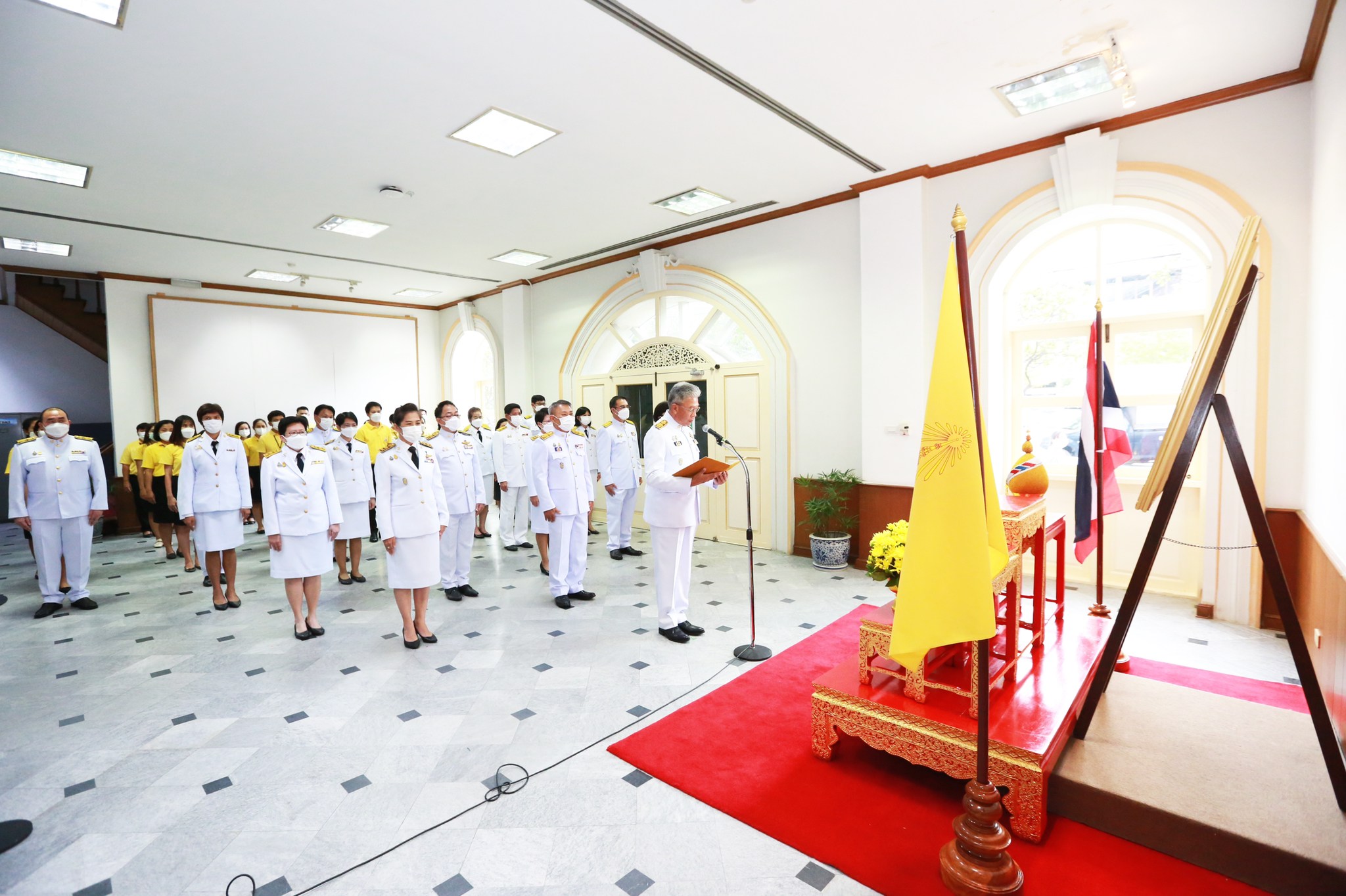 วันนี้ (27 กรกฎาคม 2565) เวลา 13.00 น. นายดิสทัต โหตระกิตย์ เลขาธิการนายกรัฐมนตรี เป็นประธานในพิธีถวายสัตย์ปฏิญาณเพื่อเป็นข้าราชการที่ดีและพลังของแผ่นดิน พร้อมกล่าวถวายพระพรชัยมงคลและกล่าวนำถวายสัตย์ปฏิญาณฯ เนื่องในวันเฉลิมพระชนมพรรษาพระบาทสมเด็จพระเจ้าอยู่หัว 28 กรกฎาคม 2565 โดยมี นายประทีป กีรติเรขา รองเลขาธิการนายกรัฐมนตรีฝ่ายการเมือง นางนันทวรรณ ชื่นศิริ รองเลขาธิการนายกรัฐมนตรีฝ่ายบริหาร นางสาวดวงสุดา ศรียงค์ รองเลขาธิการนายกรัฐมนตรีฝ่ายบริหาร นายสุรพงษ์ มาลี ที่ปรึกษานายกรัฐมนตรีฝ่ายข้าราชการประจำด้านยุทธศาสตร์และการวางแผน นางชนิดา เกษมศุข ผู้ช่วยเลขาธิการนายกรัฐมนตรี นางสาวบรียวรรณ์ สารกิจปรีชา ผู้ช่วยเลขาธิการนายกรัฐมนตรี และนายวราสิทธิ์ กาญจนสูตร ที่ปรึกษานายกรัฐมนตรีฝ่ายข้าราชการประจำด้านกฎหมาย พร้อมด้วยคณะผู้บริหาร ข้าราชการ และเจ้าหน้าที่สำนักเลขาธิการนายกรัฐมนตรีเข้าร่วมพิธี ณ โถงกลาง ชั้น 1 อาคารสำนักเลขาธิการนายกรัฐมนตรี (ตึกแดง) ทำเนียบรัฐบาล
