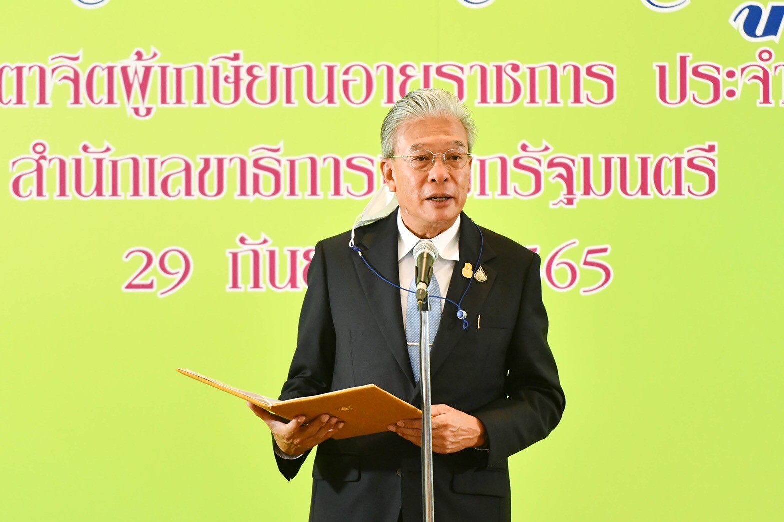 วันนี้ (29 กันยายน 2565) เวลา 15.30 น. นายดิสทัต โหตระกิตย์ เลขาธิการนายกรัฐมนตรี ให้เกียรติเป็นประธานพิธีแสดงมุทิตาจิตผู้เกษียณอายุราชการประจำปี 2565 ของ สลน. “คิดถึง ห่วงใย ด้วยใจผูกพัน" โดย นางนิชา หิรัญบูรณะ ธุวธรรม รองเลขาธิการนายกรัฐมนตรีฝ่ายบริหาร ประธานกรรมการสวัสดิการ สลน. กล่าวรายงานและแนะนำผู้เกษียณอายุราชการ โดยมี นายอนุชา บูรพชัยศรี รองเลขาธิการนายกรัฐมนตรีฝ่ายการเมือง นายธีระพงษ์ วงศ์ศิวะวิลาส ที่ปรึกษานายกรัฐมนตรีฝ่ายข้าราชการประจำ นางนันทวรรณ ชื่นศิริ รองเลขาธิการนายกรัฐมนตรีฝ่ายบริหารพร้อมคณะผู้บริหาร และเจ้าหน้าที่สำนักเลขาธิการนายกรัฐมนตรี เข้าร่วมพิธี โอกาสนี้ เลขาธิการนายกรัฐมนตรี กล่าวชื่นชมและขอบคุณผู้เกษียณอายุราชการที่ตั้งใจปฏิบัติหน้าที่ด้วยความอุตสาหะ ซื่อสัตย์ สุจริต และเสียสละตลอดมา จากนั้น มอบของที่ระลึกแก่ผู้เกษียณอายุราชการ และถ่ายภาพร่วมกัน ณ อาคารศูนย์กีฬา สำนักเลขาธิการนายกรัฐมนตรี ชั้น 2 ทำเนียบรัฐบาล