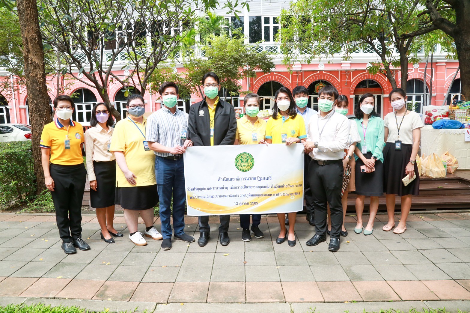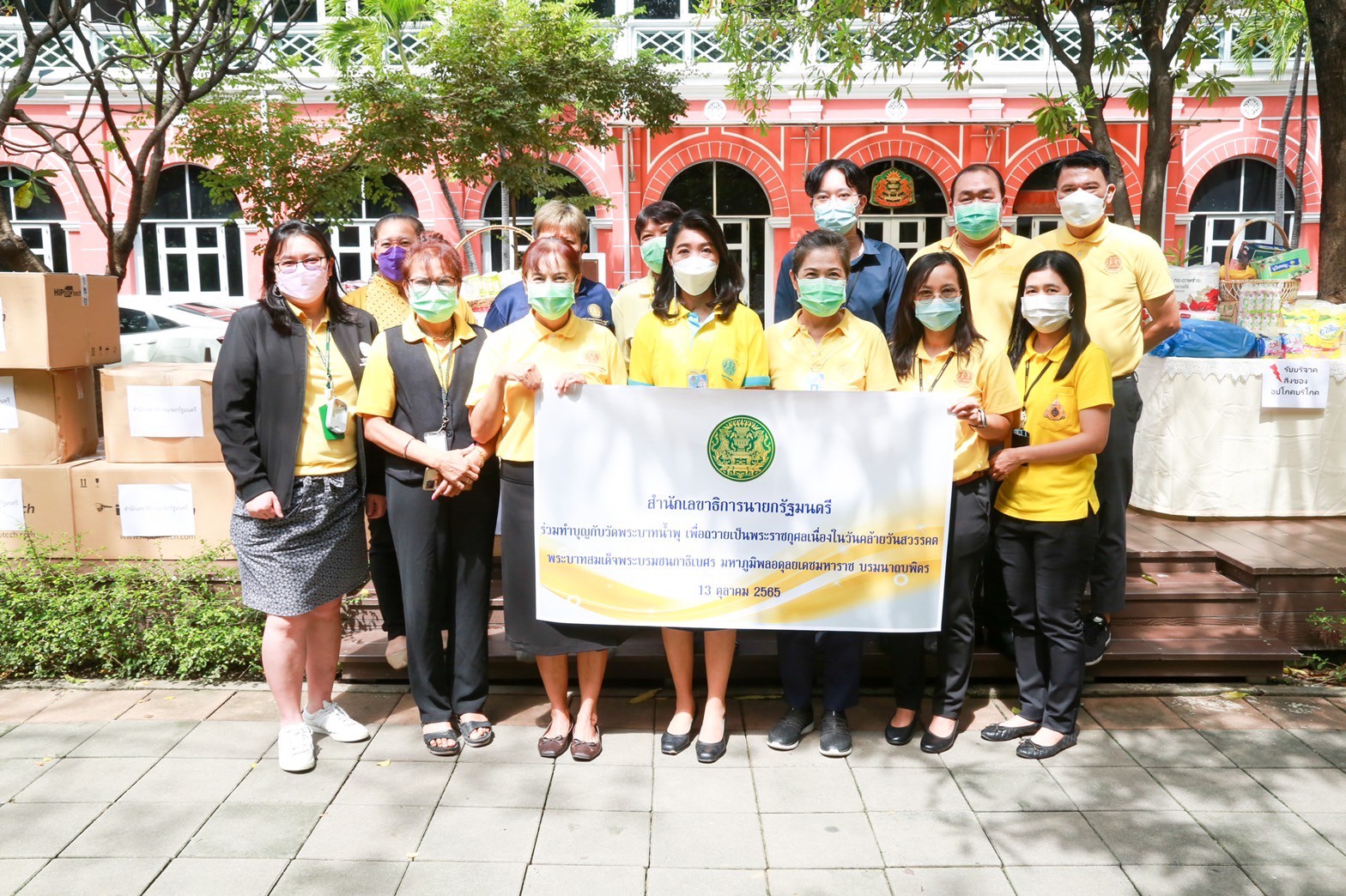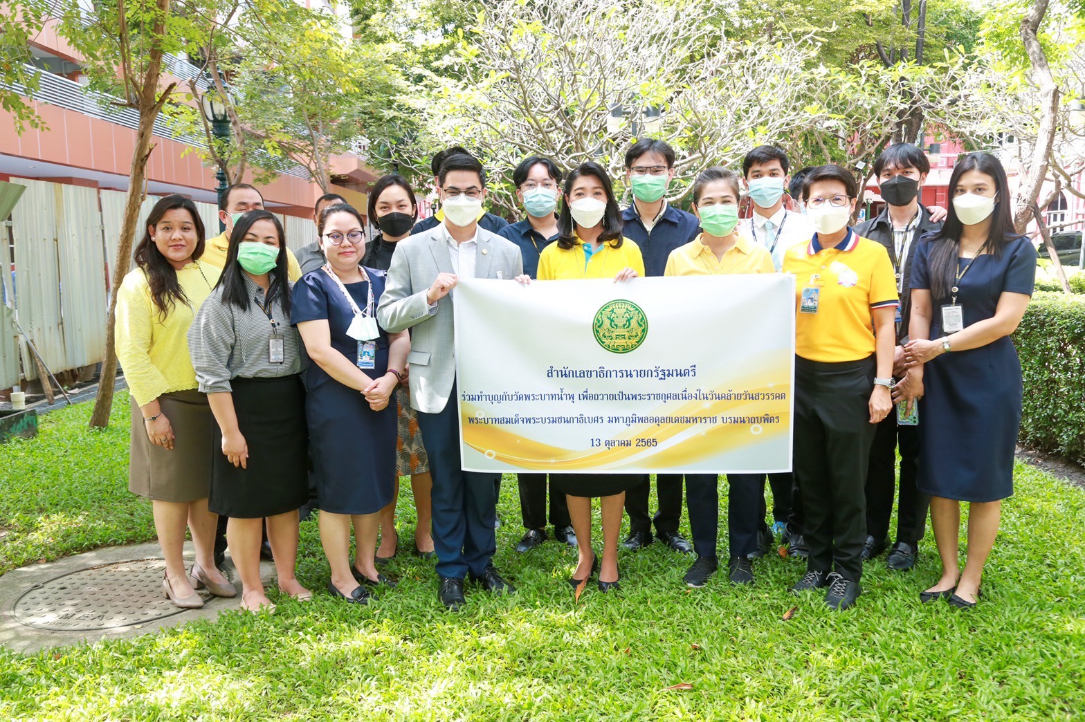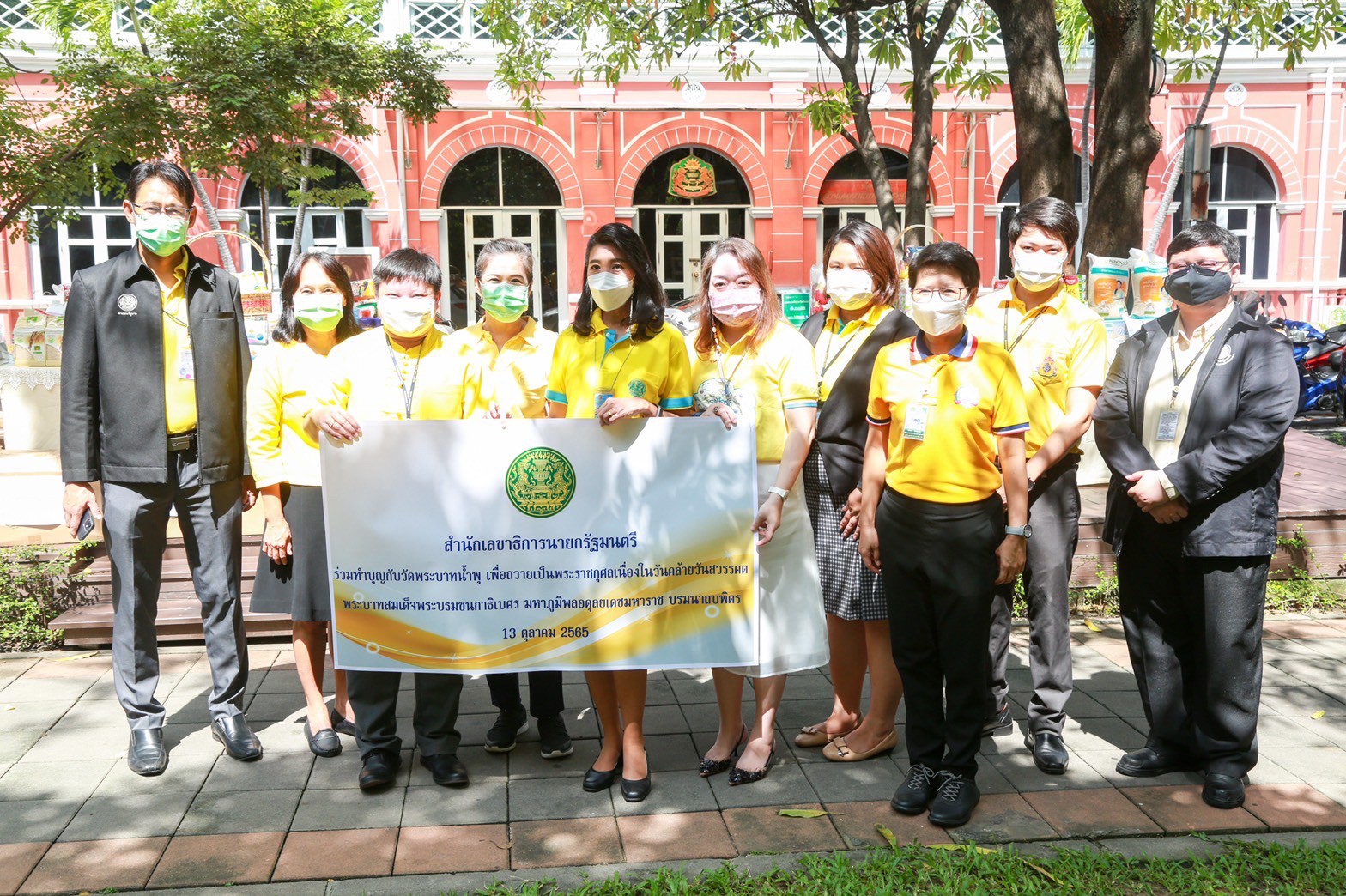 วันนี้ (12 ตุลาคม 2565) เวลา 10.30 น. ณ บริเวณลานนันทนาการสวนหย่อมน้ำพุ หน้าอาคาร 41 ทำเนียบรัฐบาล นางนิชา หิรัญบูรณะ ธุวธรรม รองเลขาธิการนายกรัฐมนตรีฝ่ายบริหาร นำคณะผู้บริหาร และบุคลากรสำนักเลขาธิการนายกรัฐมนตรีร่วมกิจกรรมทำบุญกับวัดพระบาทน้ำพุ เพื่อถวายเป็นพระราชกุศลเนื่องในวันคล้ายวันสวรรคต พระบาทสมเด็จพระบรมชนกาธิเบศร มหาภูมิพลอดุลยเดชมหาราช บรมนาถบพิตร 13 ตุลาคม 2565 ในการนี้ นายดิสทัต โหตระกิตย์เลขาธิการนายกรัฐมนตรี พร้อมด้วยคณะผู้บริหาร และบุคลากรสำนักเลขาธิการนายกรัฐมนตรี ร่วมทำบุญบริจาคหน้ากากอนามัย N95 จำนวน 5,000 ชิ้น ชุดป้องกันเชื้อโรค PPE จำนวน 250 ชุด เครื่องอุปโภคบริโภค และเงินรับบริจาค โดย นางนันทวรรณ ชื่นศิริ รองเลขาธิการนายกรัฐมนตรีฝ่ายบริหาร เป็นผู้แทนนำสิ่งของและเงินบริจาคไปถวายแด่ พระราชวิสุทธิประชานาถ (เจ้าคุณอลงกต) เจ้าอาวาสวัดพระบาทน้ำพุ ณ สำนักงาน ก.พ. จังหวัดนนทบุรี
