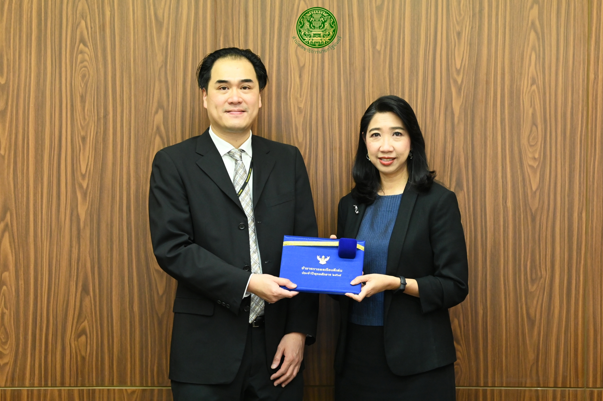 วันนึ้(13 กรกฎาคม 2566) เวลา 09.30 น. รองเลขาธิการนายกรัฐมนตรีฝ่ายบริหาร (นางนิชา หิรัญบูรณะ ธุวธรรม) ให้เกียรติมอบเกียรติบัตรและเข็มเชิดชูเกียรติข้าราชการดีเด่น แก่ผู้ได้รับคัดเลือกให้เป็นข้าราชการพลเรือนดีเด่นของสำนักเลขาธิการนายกรัฐมนตรี ประจำปี 2564 และประจำปี 2565 โดยมีผู้บริหาร สลน. ร่วมในพิธีฯ โดยรองเลขาธิการนายกรัฐมนตรี (นางนิชา หิรัญบูรณะ ธุวธรรม) กล่าว "เข็มข้าราชการที่ดีเด่นถือเป็นเครื่องหมายที่เป็นแรงบันดาลใจให้กับข้าราชการทั้งหมด เป็นรางวัลที่ทรงเกียรติ ที่ได้ประสบความสำเร็จทำผลประโยชน์ให้กับองค์กร ในนามผู้บริหารทุกท่าน ของสลน. ขอแสดงความยินดีกับข้าราชการดีเด่นประจำปี 2564 นางสาวเชาวนี กิติบุตร นักวิเคราะห์นโยบายและแผน ชำนาญการพิเศษ และนางพรรณเพ็ญ อินทะเรืองศร นักวิชาการเงินและบัญชีชำนาญการ และผู้ได้รับคัดเลือกประจำปี 2565 ร้อยโท มานพ อเนกวณิช ผู้เชี่ยวชาญด้านกฎหมาย และนางศุภนิจ สวัสดี นักจัดการงานทั่วไปชำนาญการพิเศษ" จากนั้นผู้บริหาร สลน. ถ่ายภาพร่วมกับข้าราชการดีเด่นของ สลน. เป็นอันเสร็จพิธีฯ