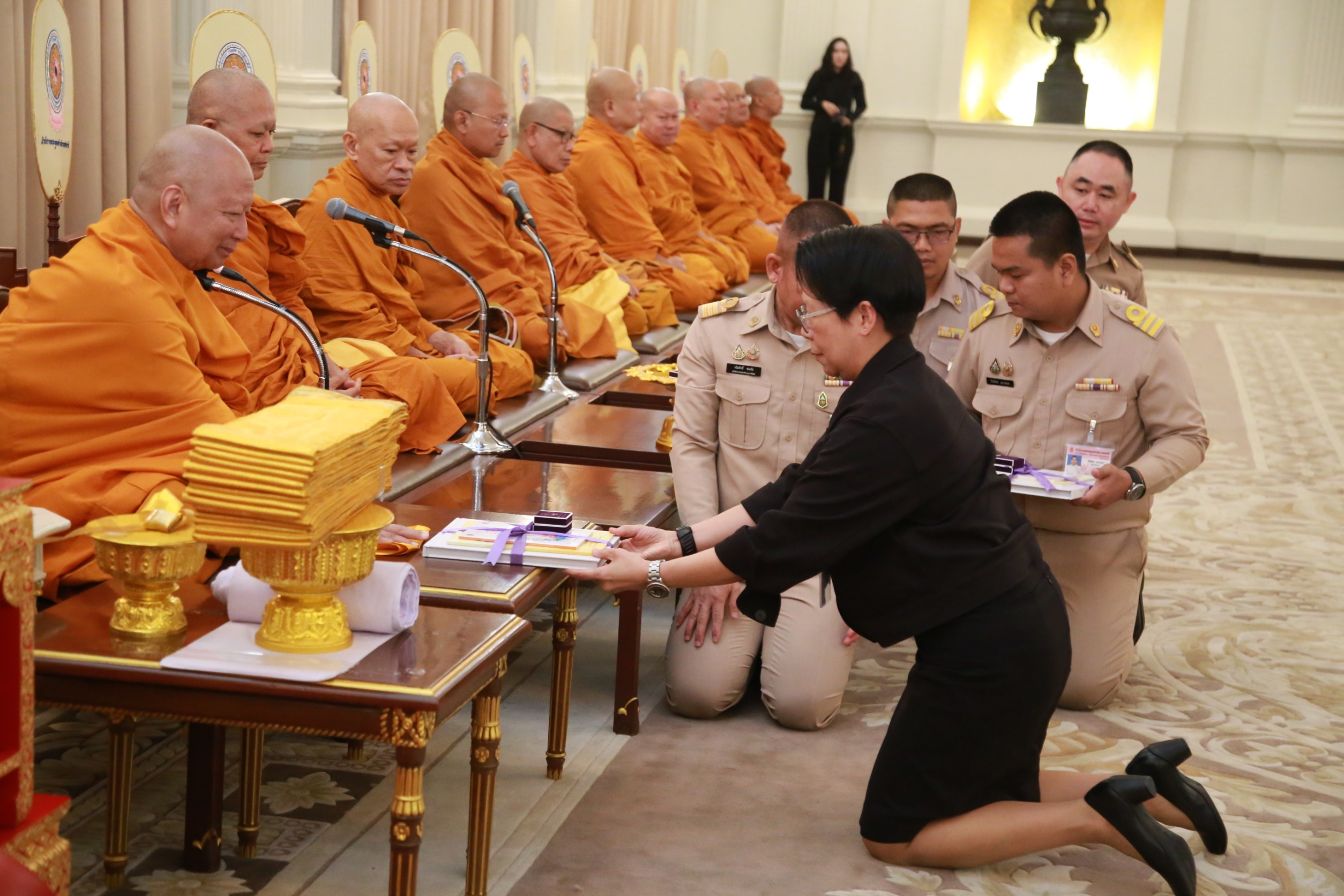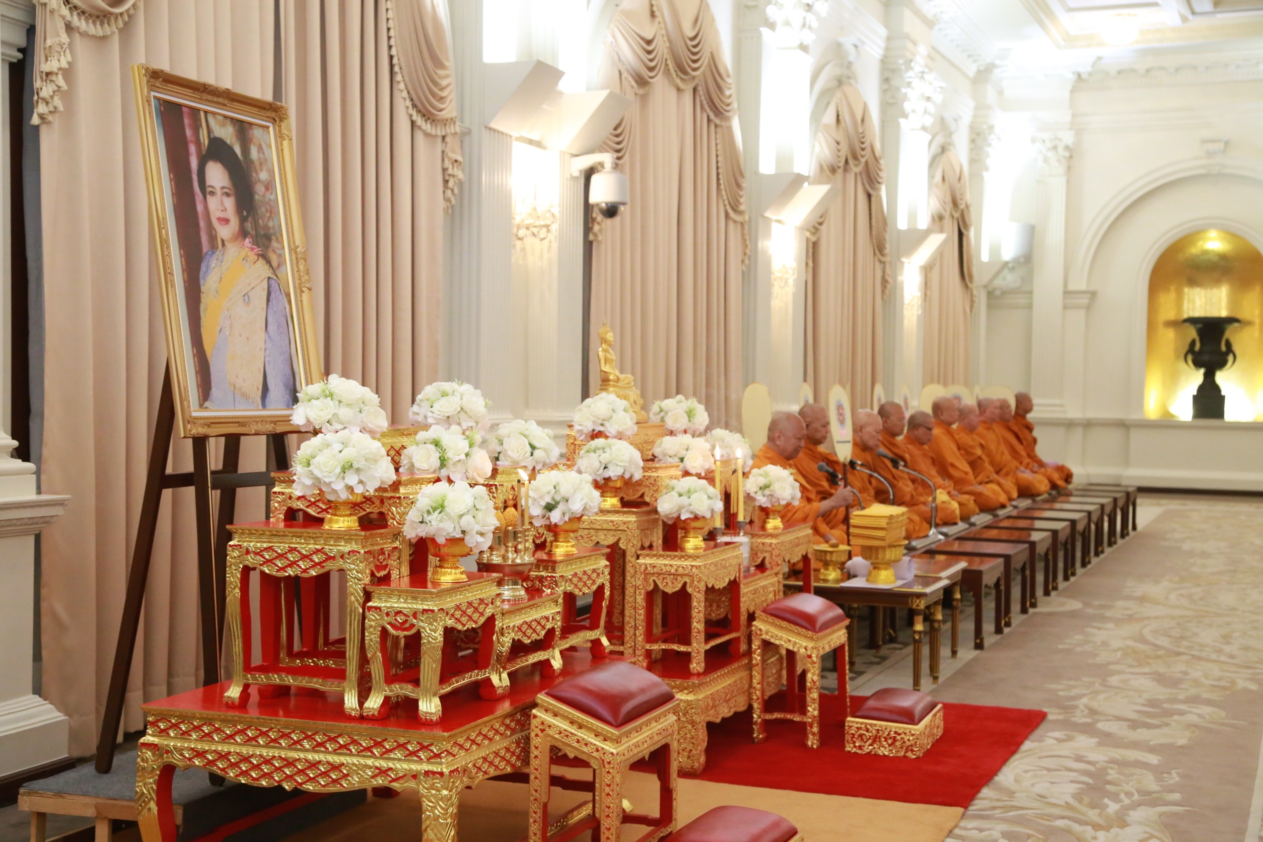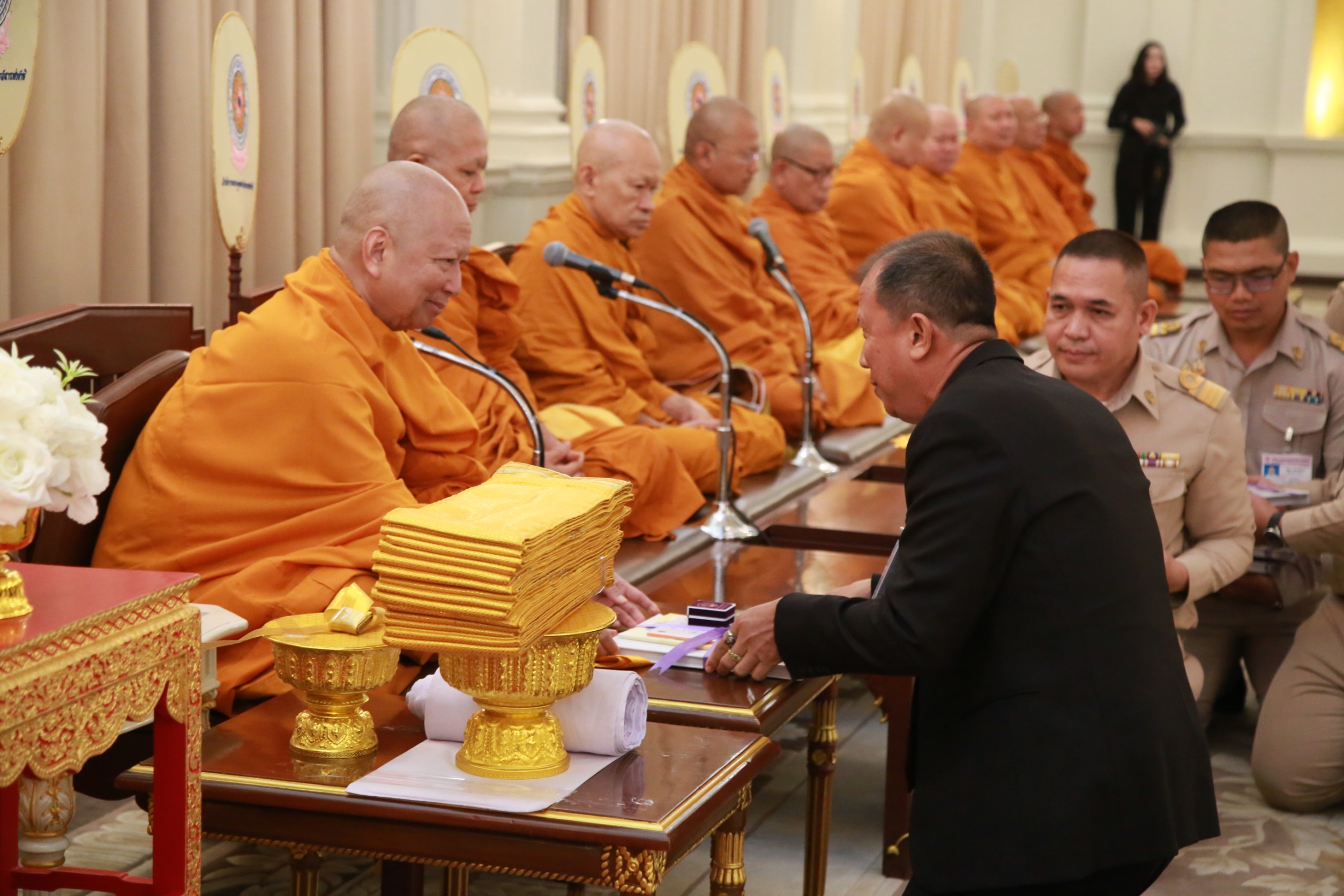 จากนั้น นายชยันต์ เมืองสง รองเลขาธิการนายกรัฐมนตรีฝ่ายบริหาร นางชนิดา เกษมศุข รองเลขาธิการนายกรัฐมนตรีฝ่ายบริหาร ได้ร่วมถวายไทยธรรมแด่พระสงฆ์ เสร็จแล้วร่วมเจริญจิตตภาวนา เพื่อน้อมรำลึกในพระมหากรุณาธิคุณอันหาที่สุดมิได้ และอุทิศถวายเป็นพระราชกุศล