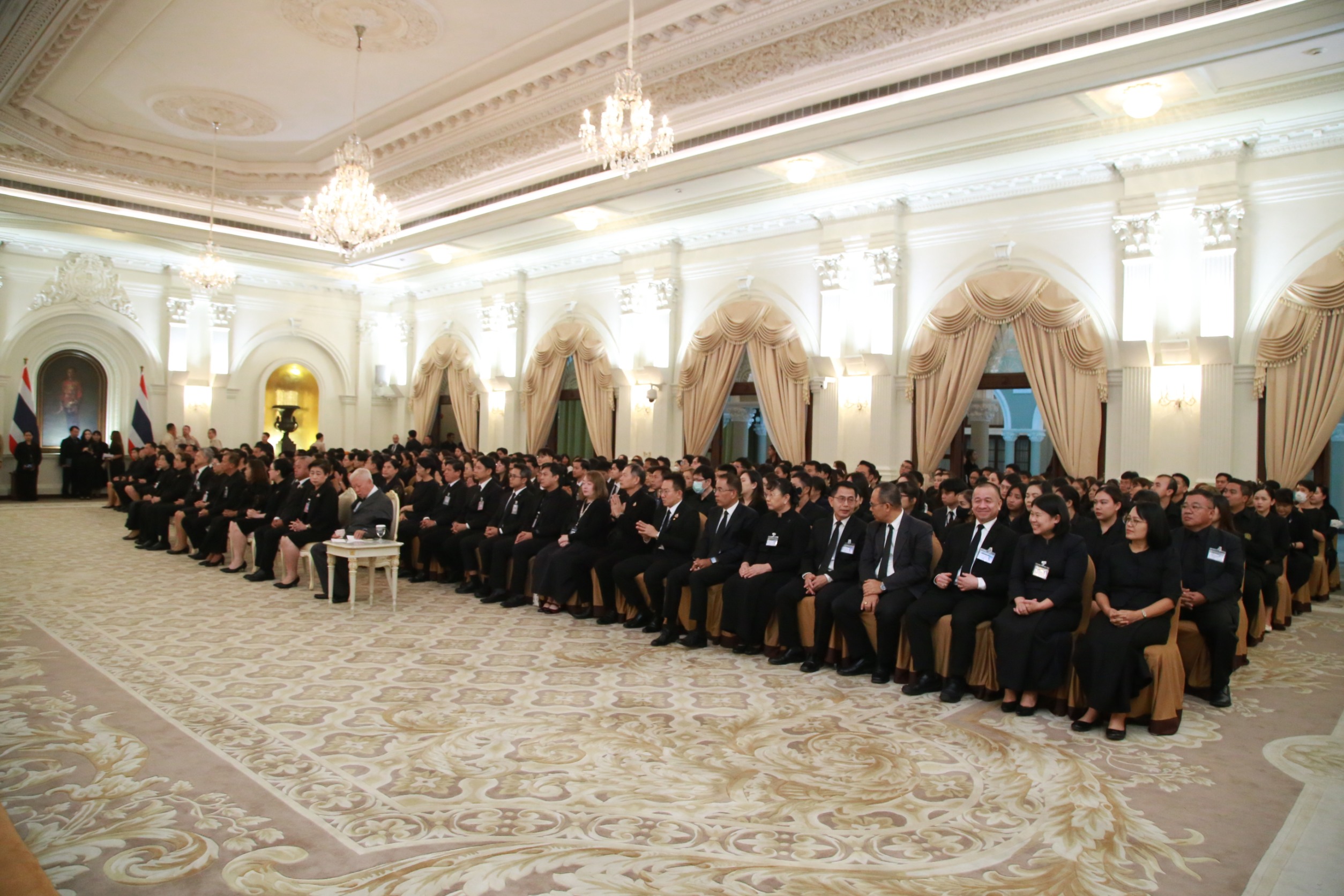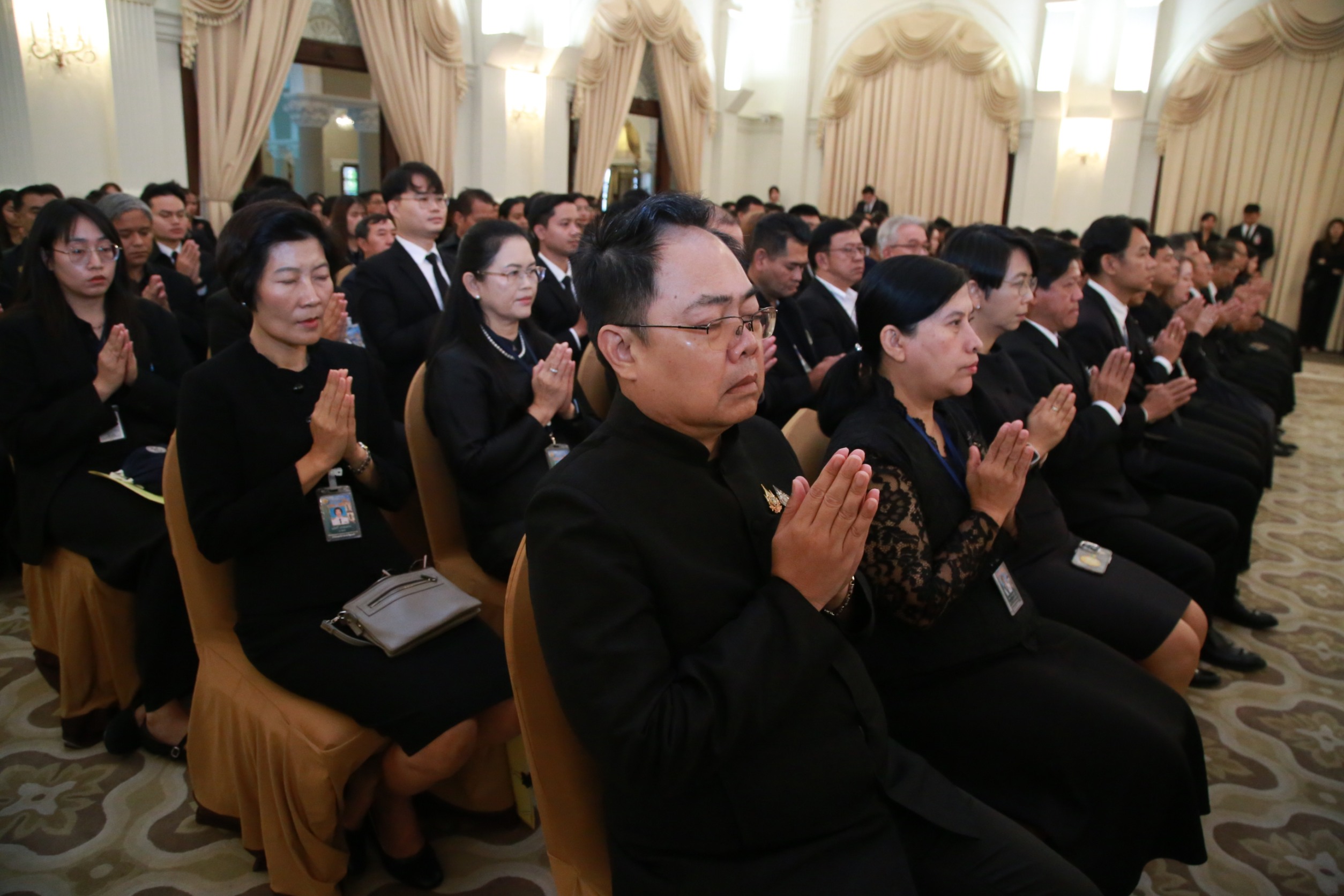 วันนี้ (5 พฤศจิกายน 2568) เวลา 10:00 น. นายชยันต์ เมืองสง รองเลขาธิการนายกรัฐมนตรีฝ่ายบริหาร นางชนิดา เกษมศุข รองเลขาธิการนายกรัฐมนตรีฝ่ายบริหาร นำคณะผู้บริหาร เจ้าหน้าที่ สำนักเลขาธิการนายกรัฐมนตรี เข้าร่วมพิธีบำเพ็ญกุศล ถวายพระราชกุศลแด่สมเด็จพระนางเจ้าสิริกิติ์ พระบรมราชินีนาถ พระบรมราชชนนีพันปีหลวง โดย พระพรหมบัณฑิต กรรมการมหาเถรสมาคม เจ้าอาวาสวัดประยุรวงศาวาส พร้อมพระสงฆ์ทรงสมณศักดิ์ รวมจำนวน 10 รูป โดยมี นายบวรศักดิ์ อุวรรณโณ รองนายกรัฐมนตรีเป็นประธาน พร้อมกับ คณะผู้บริหาร และบุคลากร จาก 6 หน่วยงาน ได้แก่ สำนักเลขาธิการนายกรัฐมนตรี สำนักเลขาธิการคณะรัฐมนตรี สำนักงานสภาความมั่นคงแห่งชาติ สำนักงานปลัดสำนักนายกรัฐมนตรี สำนักงานคณะกรรมการพัฒนาระบบราชการ และสํานักงานพระพุทธศาสนาแห่งชาติ ร่วมพิธี ณ ตึกสันติไมตรี (หลังใน) ทำเนียบรัฐบาล