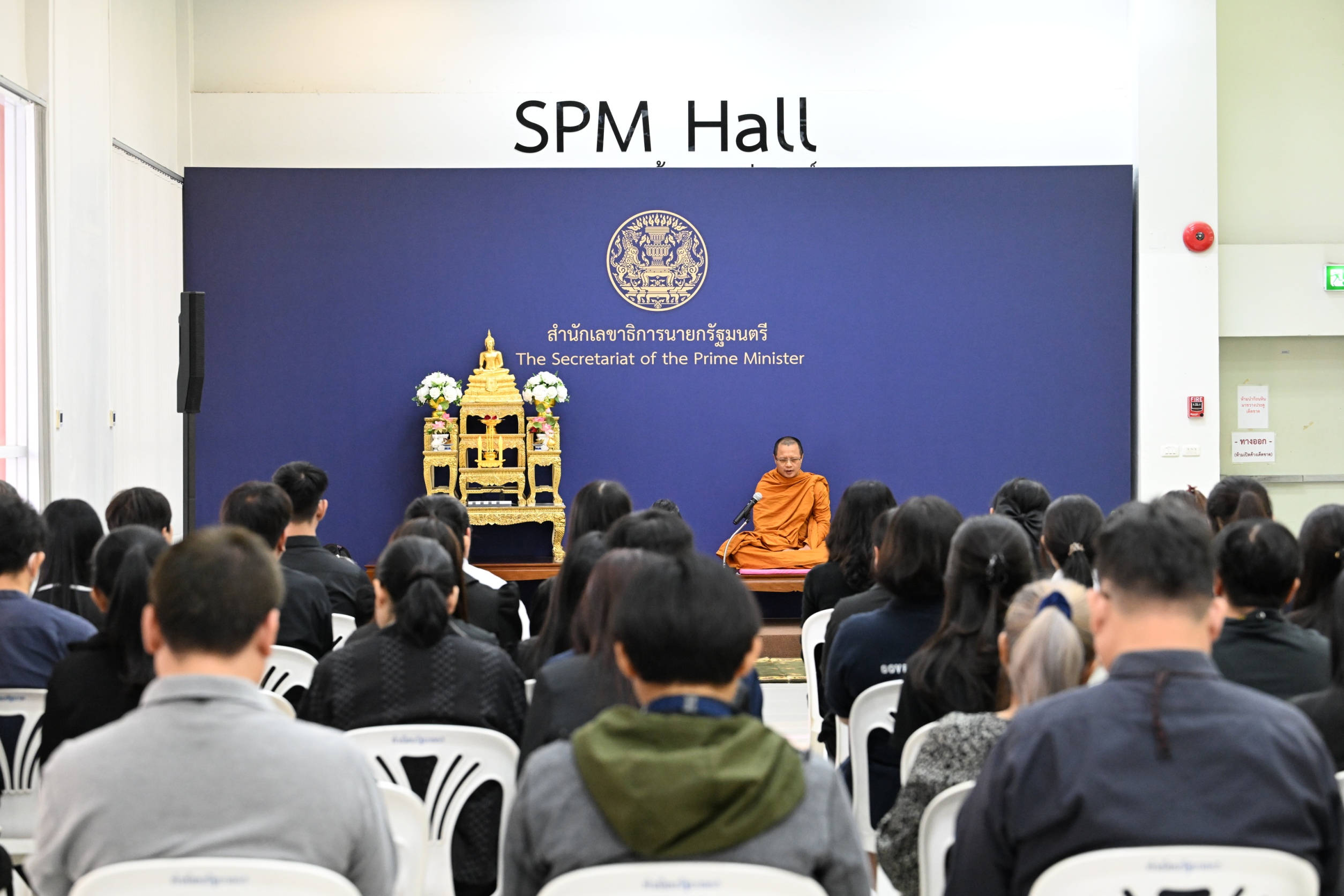 พิธีได้รับความเมตตาจากพระมหาธีรโชติ ธีรปญโญ ป.ธ.๙ ผู้ช่วยเจ้าอาวาสวัดมหาธาตุยุวราชรังสฤษฎิ์ราชวรมหาวิหาร บรรยายธรรม และสัมมาปฏิบัติ : เจริญจิตภาวนา เป็นแนวทางขัดเกลาจิตใจและประพฤติปฏิบัติหน้าที่ราชการด้วยความถูกต้อง โปร่งใส และมีสติ