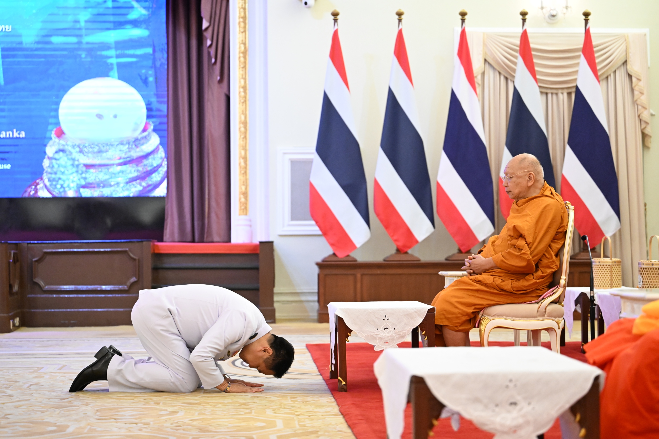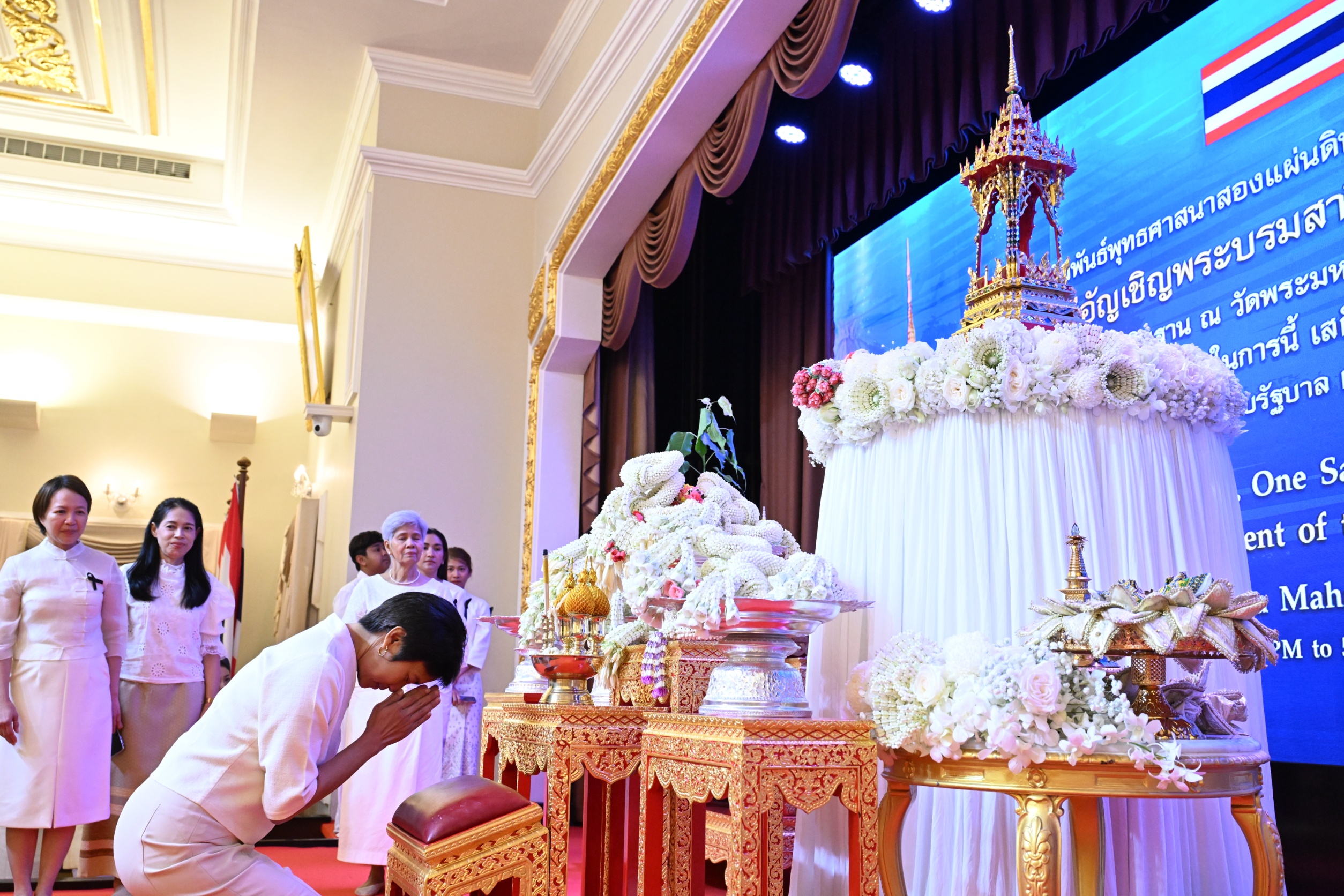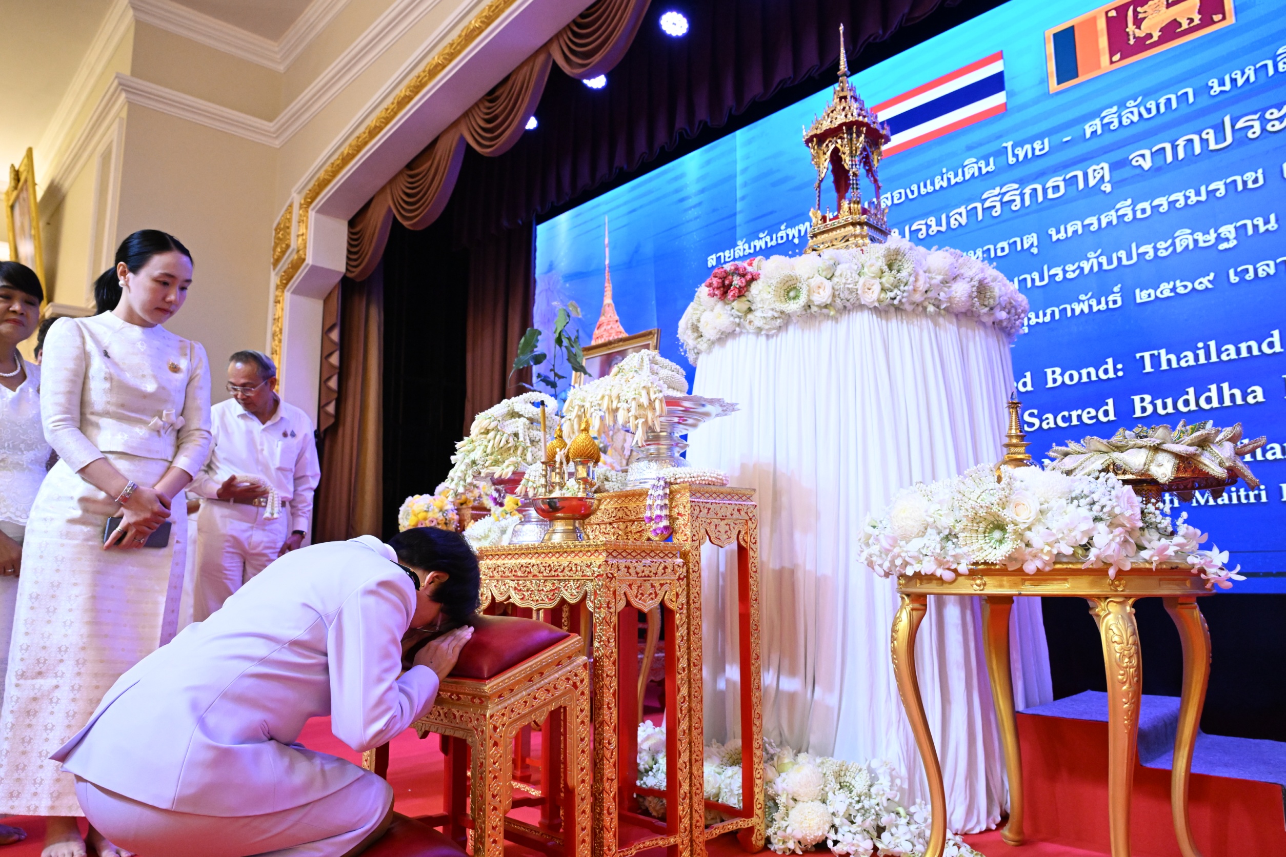 โดยมี นายอนุทิน ชาญวีรกูล นายกรัฐมนตรีและรัฐมนตรีว่าการกระทรวงมหาดไทย เป็นประธานในพิธีฯ พร้อมด้วยภริยานายกรัฐมนตรี คณะรัฐมนตรี นางเอทิริสิงเห อารัจจิลาเค ศรียานี วิชยันติ เอทิริสิงเห (H.E. Mrs. Edirisinghe Arachchilage Sriyani Wijayanthi Edirisinghe) เอกอัครราชทูตสาธารณรัฐสังคมนิยมประชาธิปไตยศรีลังกาประจำประเทศไทย หัวหน้าส่วนราชการและรองหัวหน้าส่วนราชการในทำเนียบรัฐบาล และแขกผู้มีเกียรติเข้าร่วมพิธีด้วยความปลื้มปีติและเลื่อมใสศรัทธาเข้าร่วมพิธีฯ