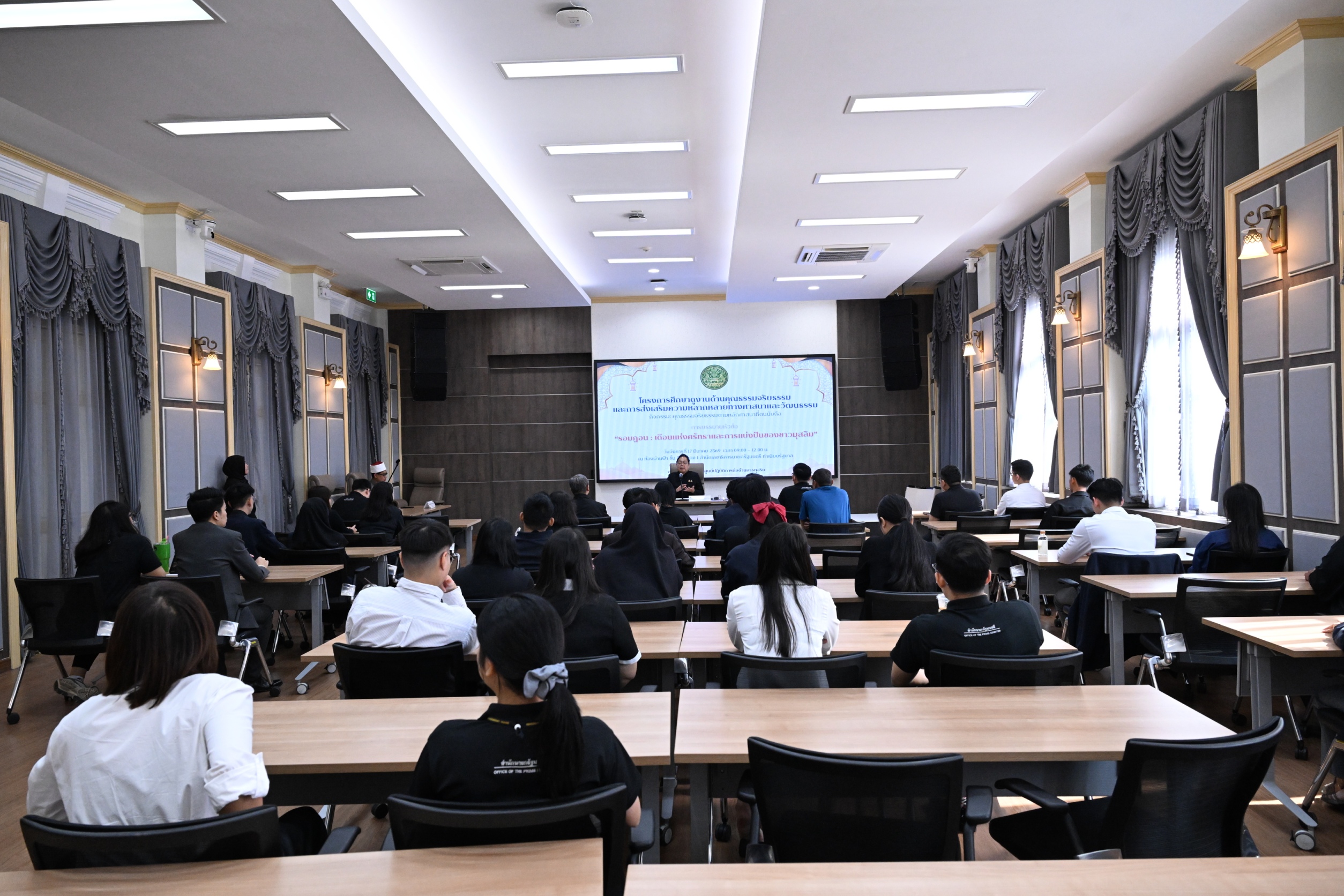 วันที่ 17 มีนาคม 2569 กลุ่มงานจริยธรรม ศปท. ร่วมกับคณะกรรมการกำกับดูแลงานด้านความเสมอภาคและความเท่าเทียมของ สลน. จัดโครงการศึกษาดูงานด้านคุณธรรมจริยธรรมและการส่งเสริมความหลากหลายทางศาสนา ภายใต้กิจกรรมคุณธรรมจริยธรรมตามหลักศาสนาที่ตนนับถือ พร้อมการบรรยายในหัวข้อ “รอมฎอน : เดือนแห่งศรัทธาและการแบ่งปันของชาวมุสลิม”