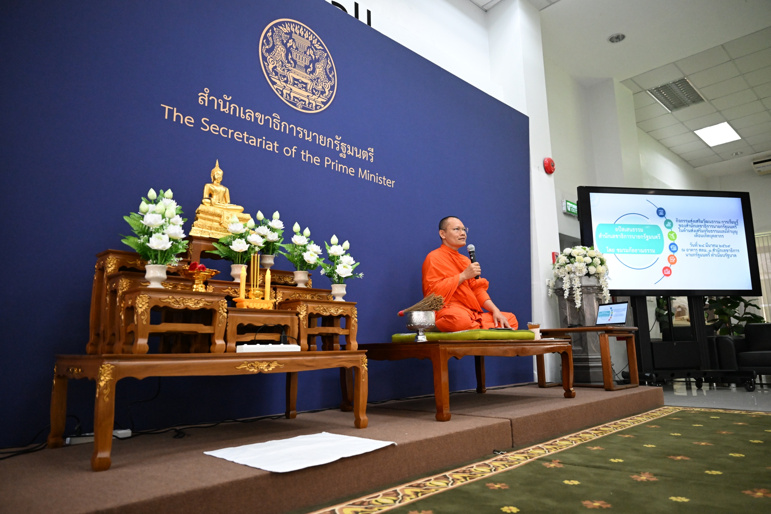 ทำเนียบรัฐบาล (24 มีนาคม 2569) – สำนักเลขาธิการนายกรัฐมนตรี (สลน.) เดินหน้าสร้างพลังใจให้คนทำงาน จัดกิจกรรมทำบุญและฟังธรรมประจำเดือนมีนาคม ณ อาคาร สลน. 1 โดยมุ่งเน้นการนำหลักธรรมมาประยุกต์ใช้ในการปฏิบัติราชการอย่างมีคุณธรรมและโปร่งใส