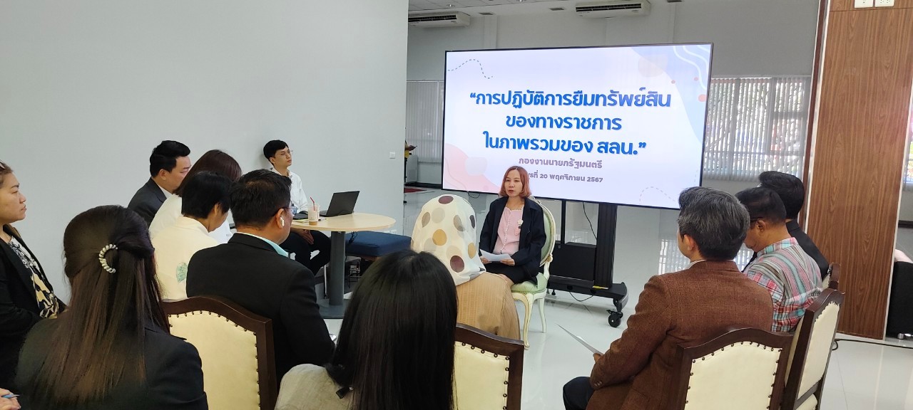 วันที่ 20 พฤศจิกายน 2567 บุคลากรของกองงานนายกรัฐมนตรีเข้าร่วมการอบรมการปฏิบัติการยืมทรัพย์สินของทางราชการ ในภาพรวมของ สลน. ณ ห้องอเนกประสงค์ SPM Hall ชั้น 1 อาคาร สลน. 1