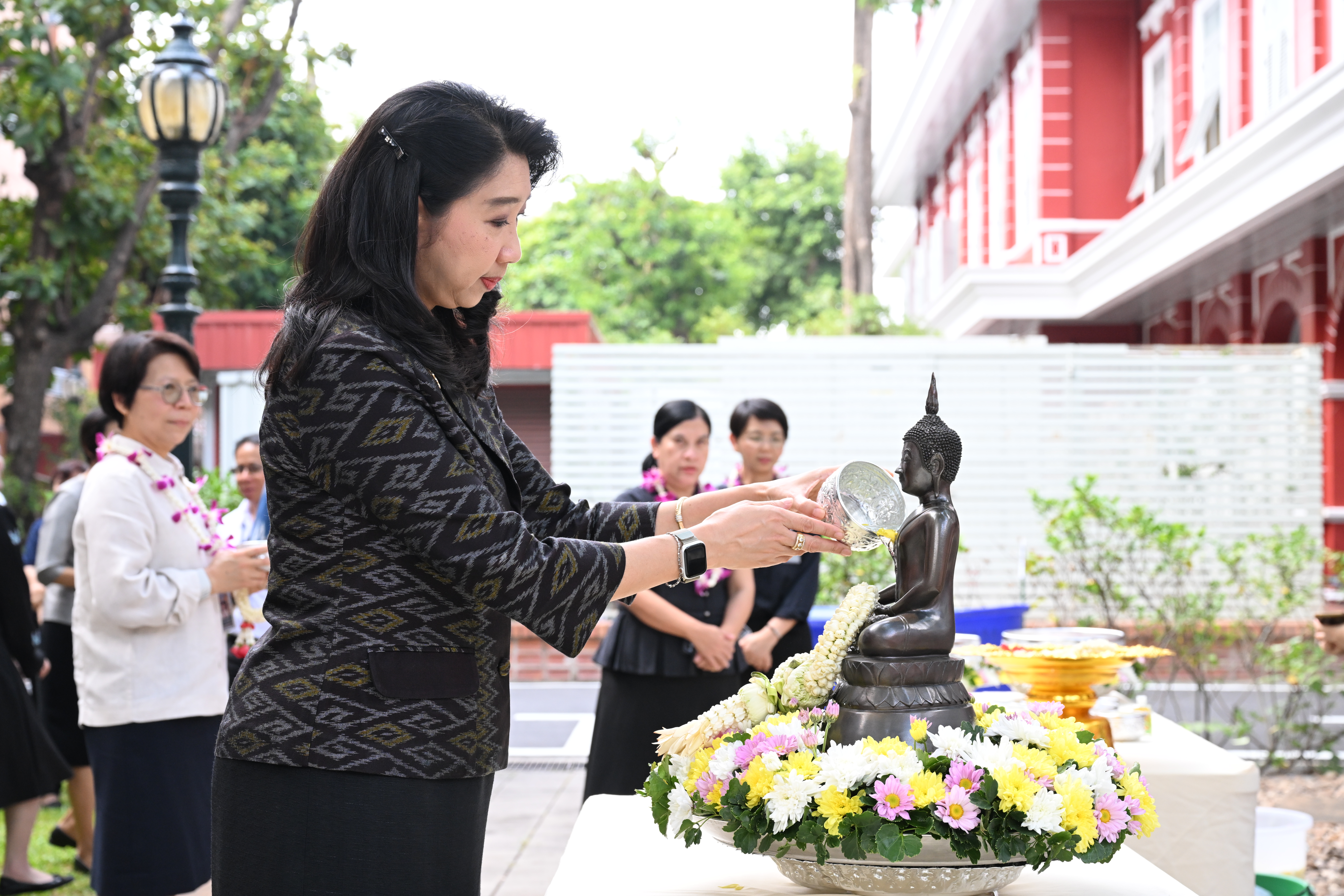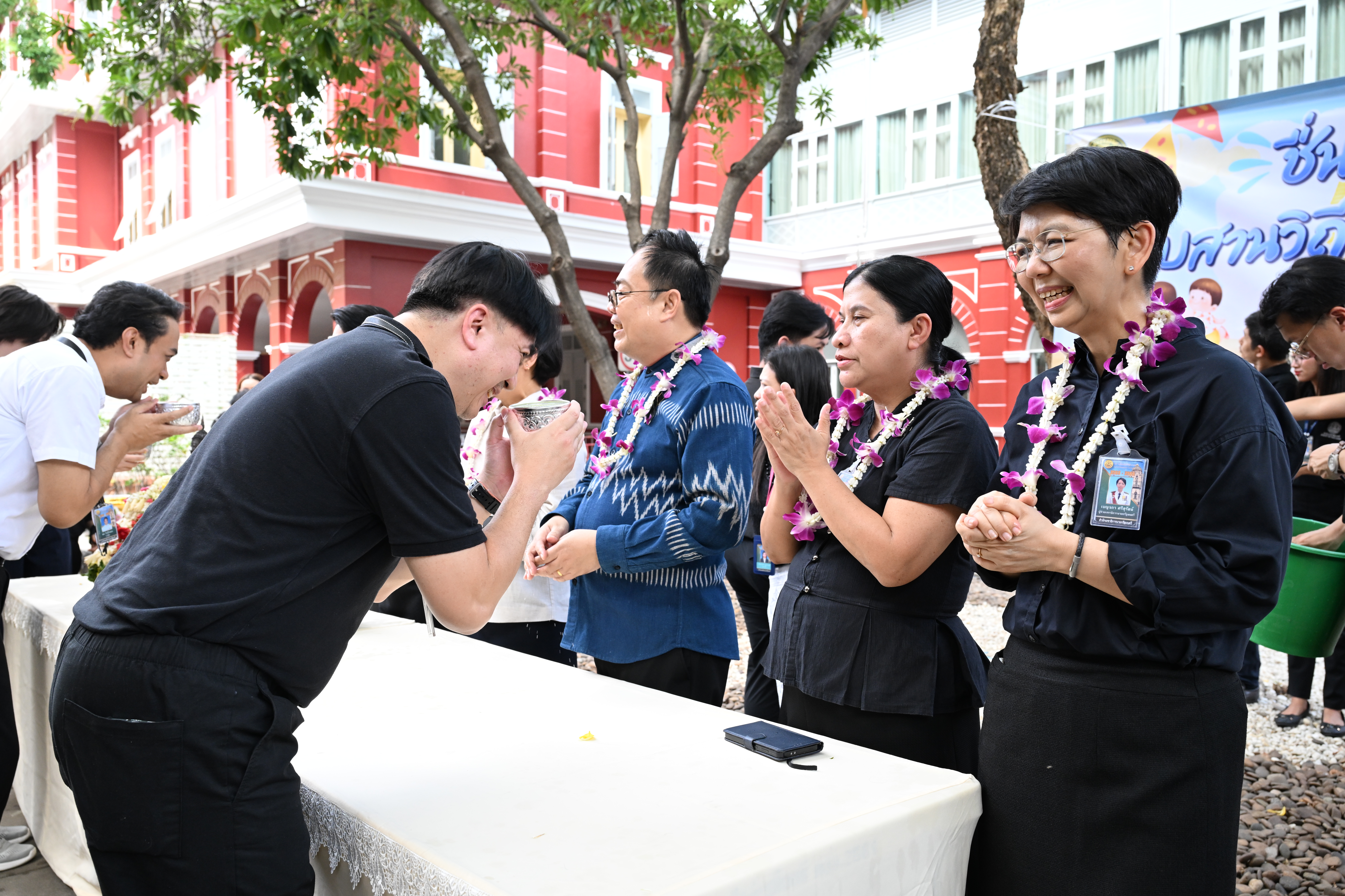 พร้อมนี้ เจ้าหน้าที่กองประสานนโยบายและยุทธศาสตร์ได้พร้อมใจกันจัดกิจกรรมรดน้ำขอพรผู้อำนวยการกอง เนื่องในโอกาสเทศกาลสงกรานต์ ประจำปี 2569 เพื่อสืบสานประเพณีไทยอันงดงาม และสร้างความสัมพันธ์อันดีระหว่างผู้บริหารและบุคลากรในองค์กร พร้อมรับโอวาทและคำอวยพรในการปฏิบัติงาน เพื่อเป็นขวัญกำลังใจในการทำหน้าที่อย่างเต็มความสามารถต่อไป โดยกิจกรรมดังกล่าวไม่เพียงแต่สะท้อนถึงความกตัญญูกตเวทีและความเคารพต่อผู้บังคับบัญชา แต่ยังเป็นการเสริมสร้างความสามัคคีและความผูกพันในองค์กรให้แน่นแฟ้นยิ่งขึ้น